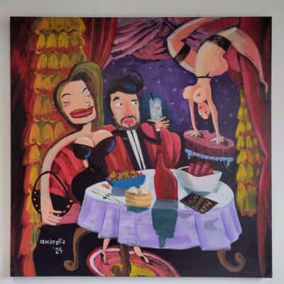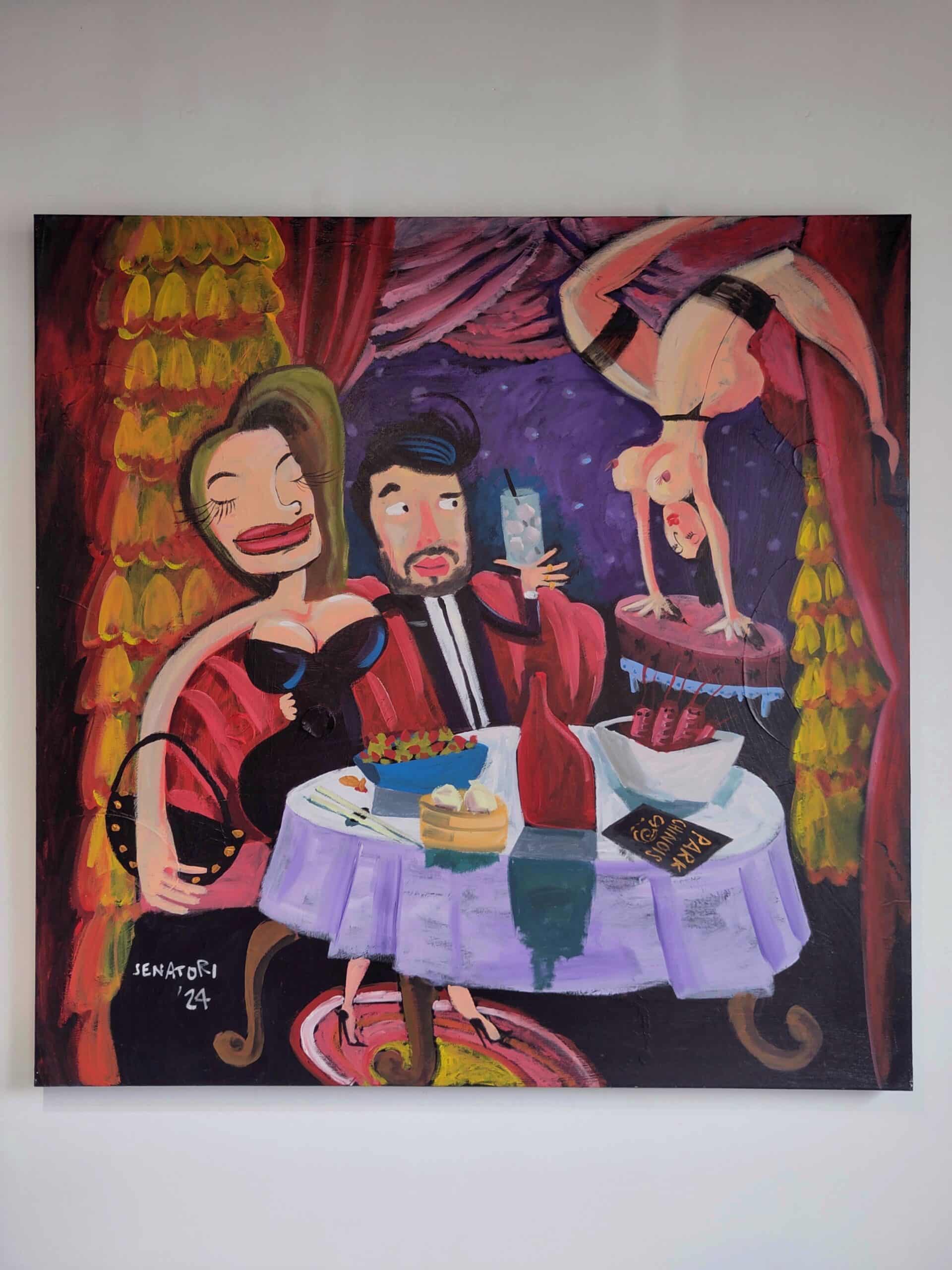 Senatori verbindt met ‘Look at Me Now’ de Gouden Eeuw met het hedendaagse leven. Een hommage aan twee ogenschijnlijke tegenpolen. Een fusie van verleden en heden. ‘Look at Me Now’ is een visuele reis waarin Senatori een brug slaat tussen verschillende tijdperken en maatschappelijke contexten. Op geheel eigentijdse wijze vertrouwt hij pre-millennium artefacten, Pop-cultuur en de consumptie maatschappij toe aan het doek waarbij de kunstenaar met een diepzwarte achtergrond en een gouden randje een gevoel van nostalgie en herkenning weet op te roepen.
