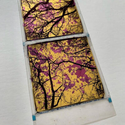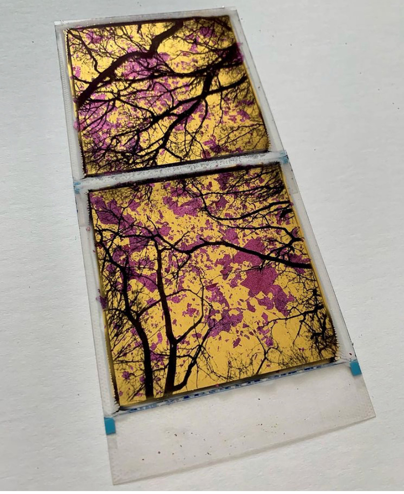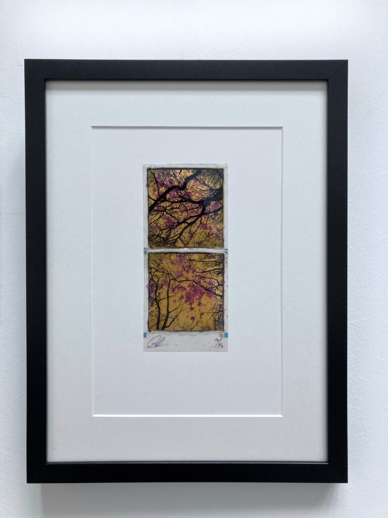 Originele met 24ct bladgoud bewerkte polaroid van Andrew Millar.
