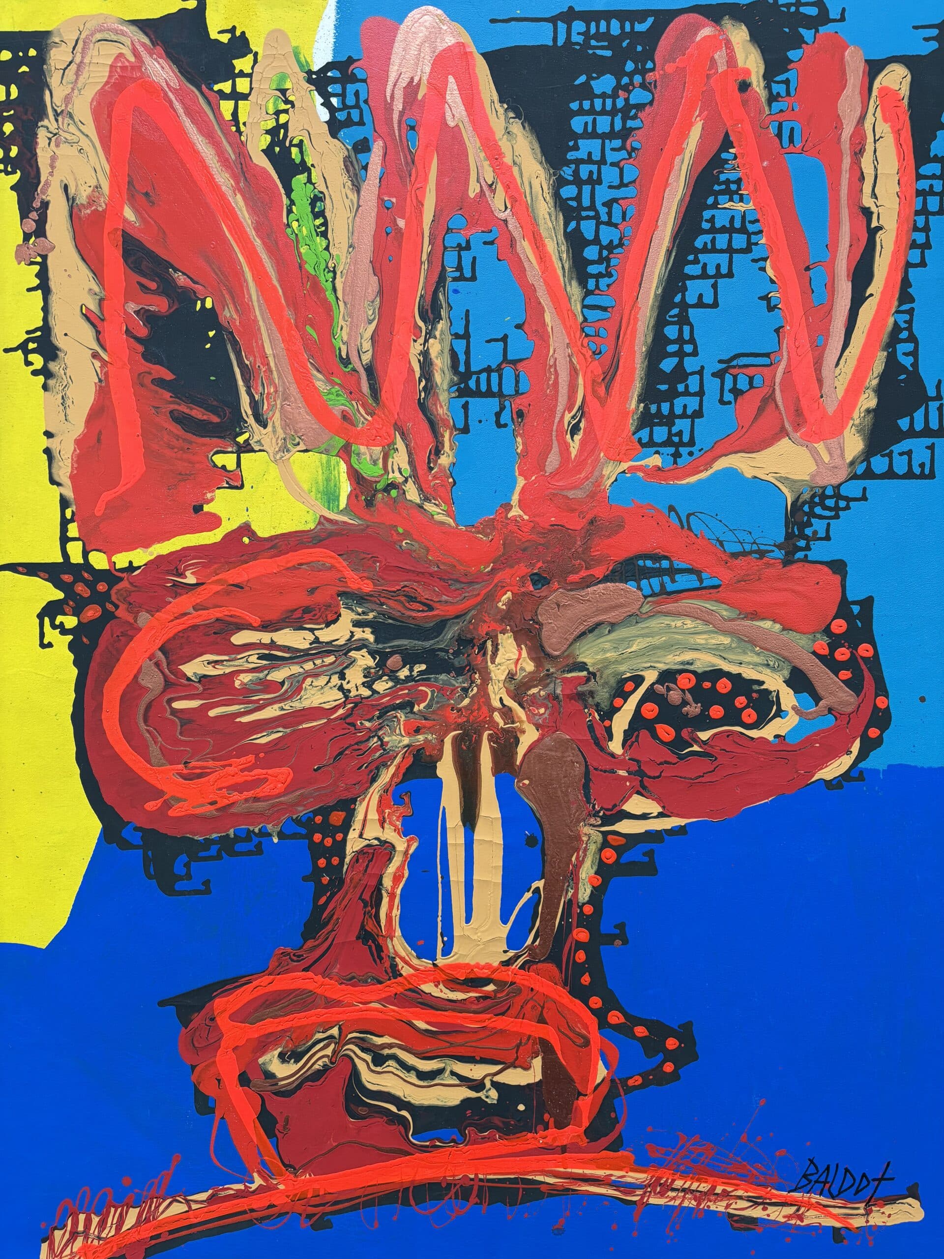 Baldots kunstwerken weerspiegelen vaak thema’s van strijd, veerkracht en de menselijke geest, geïnspireerd door zijn eigen ervaringen als vechter. Met gedurfde kleuren, dynamische vormen en een unieke mix van abstractie en realisme creëert Baldot werken die doordrenkt zijn van energie en beweging.