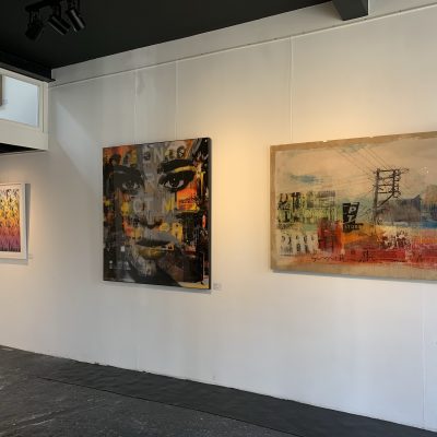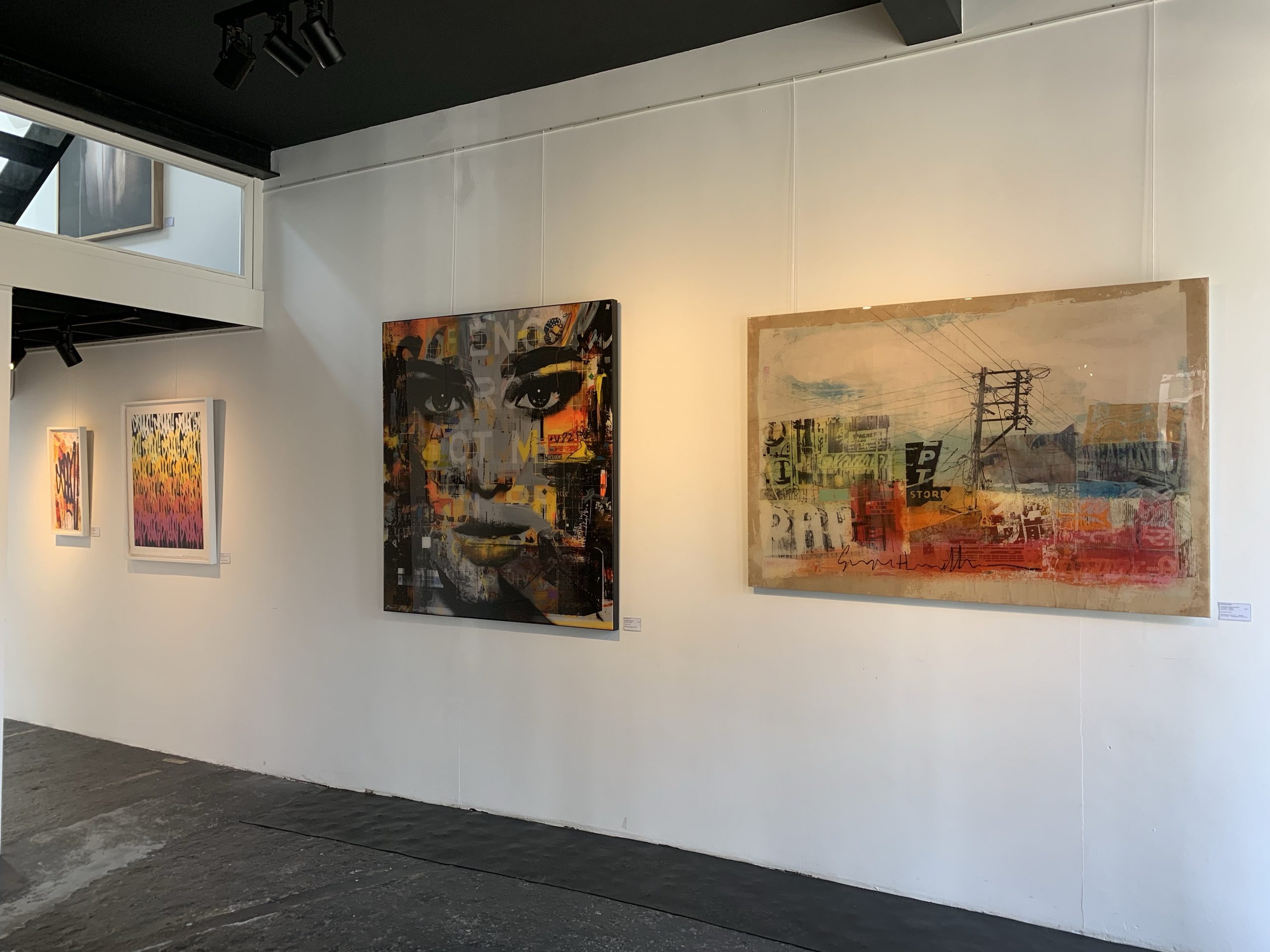 Prachtig origineel werk van Amsterdamse kunstenaar George Heidweiller uit 2013. De kunstenaar heeft de stukken vervaardigd op grof linnen en cardboard en met de hand met een mix van gemengde technieken (street-art, grafische kunst, fotografie, collages, verf, klei en sjablonen) opgebouwd. De stukken zijn door de kunstenaar vervolgens op dibond verwerkt en in epoxyhars gegoten waardoor een spectaculair spel ontstaat tussen het ruige karakter van de stukken en het diepte-effect van het epoxy!