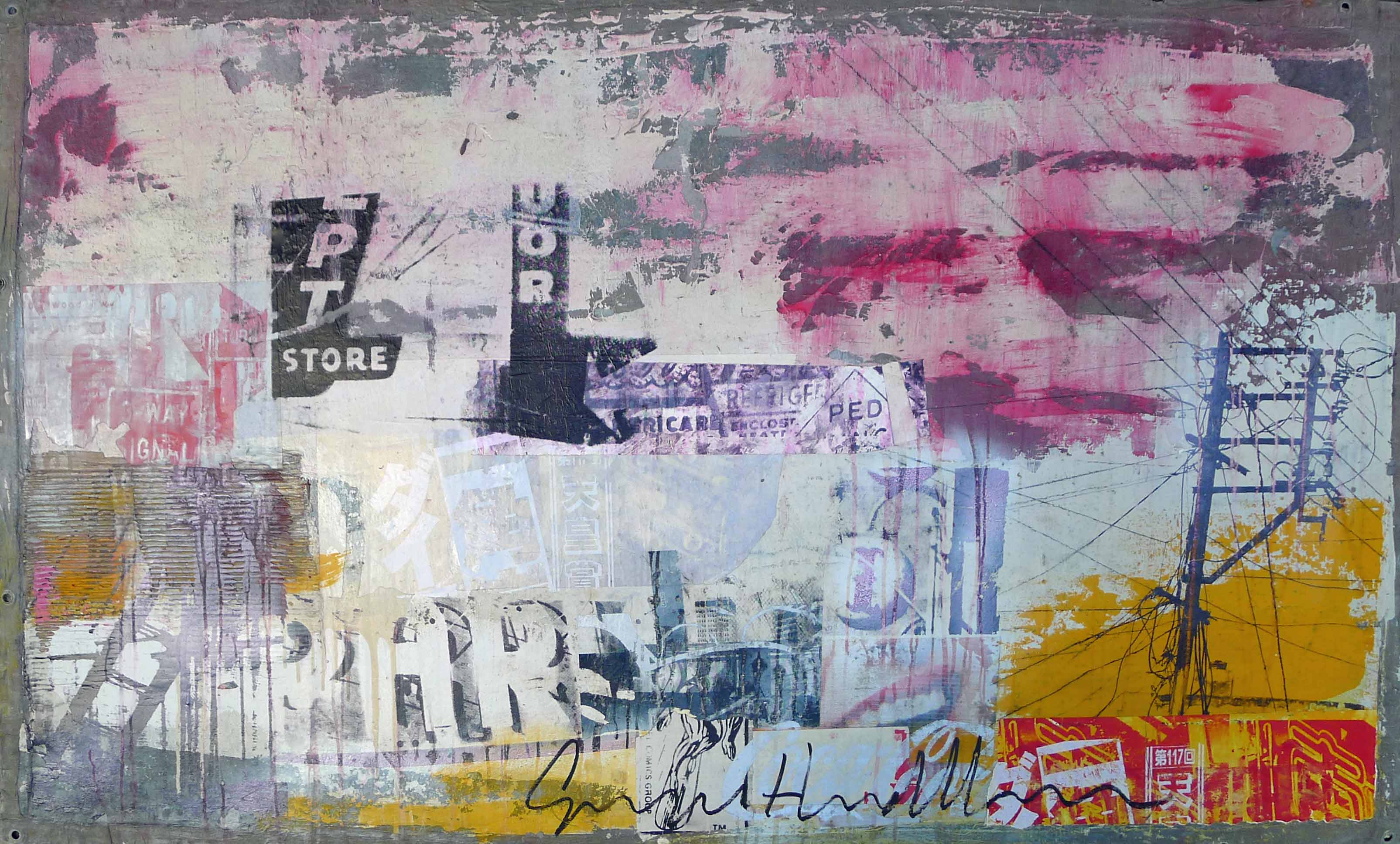 Prachtig origineel werk van Amsterdamse kunstenaar George Heidweiller uit 2013. De kunstenaar heeft de stukken vervaardigd op grof linnen en cardboard en met de hand met een mix van gemengde technieken (street-art, grafische kunst, fotografie, collages, verf, klei en sjablonen) opgebouwd. De stukken zijn door de kunstenaar vervolgens op dibond verwerkt en in epoxyhars gegoten waardoor een spectaculair spel ontstaat tussen het ruige karakter van de stukken en het diepte-effect van het epoxy!