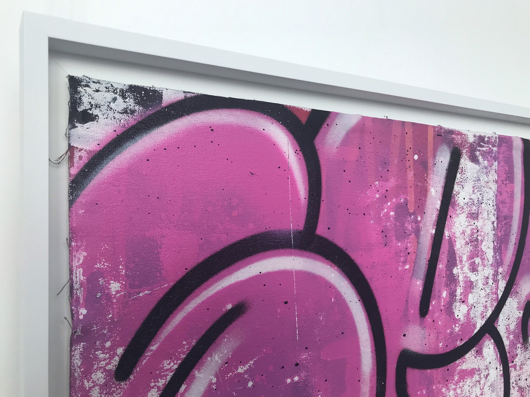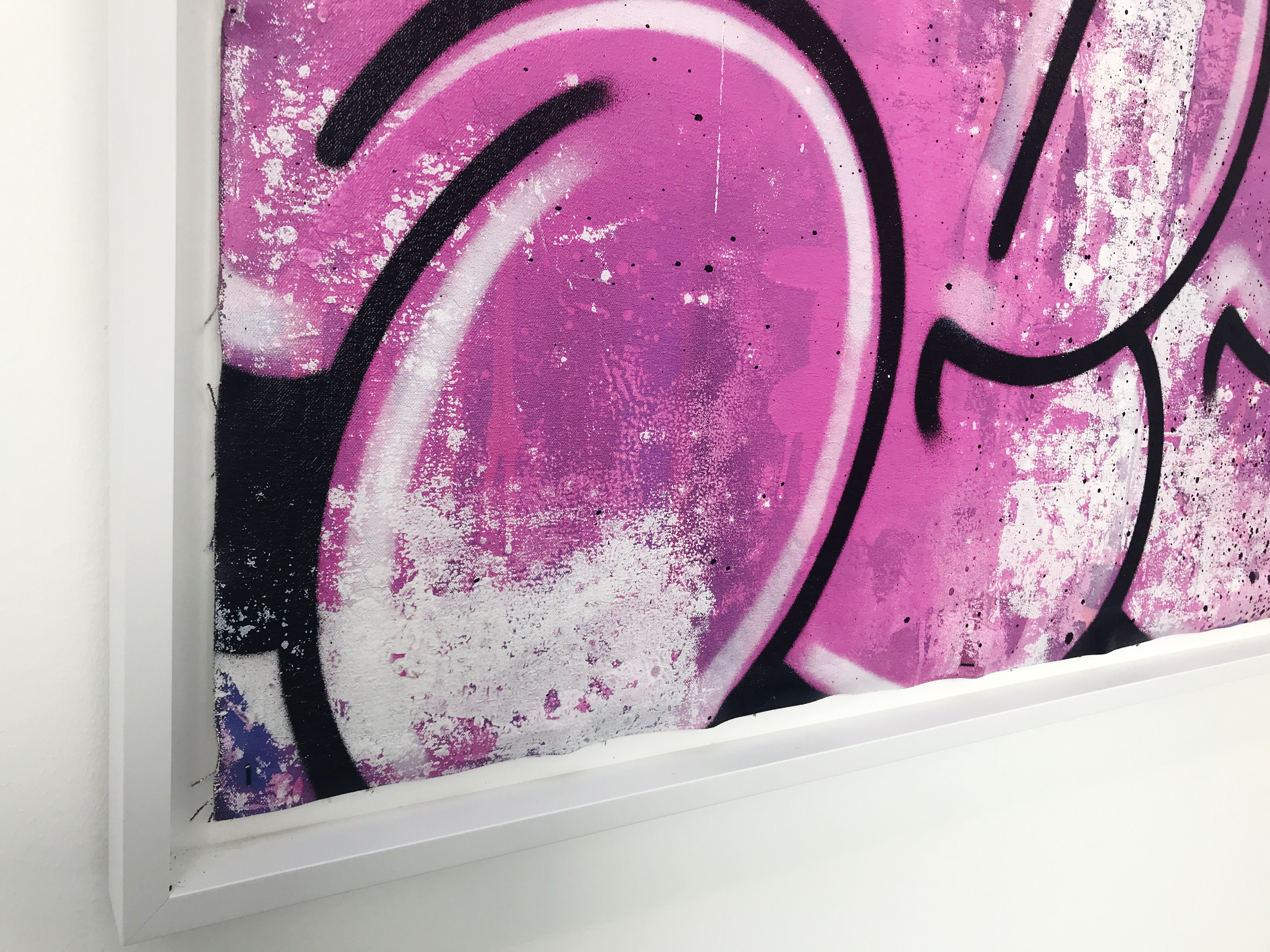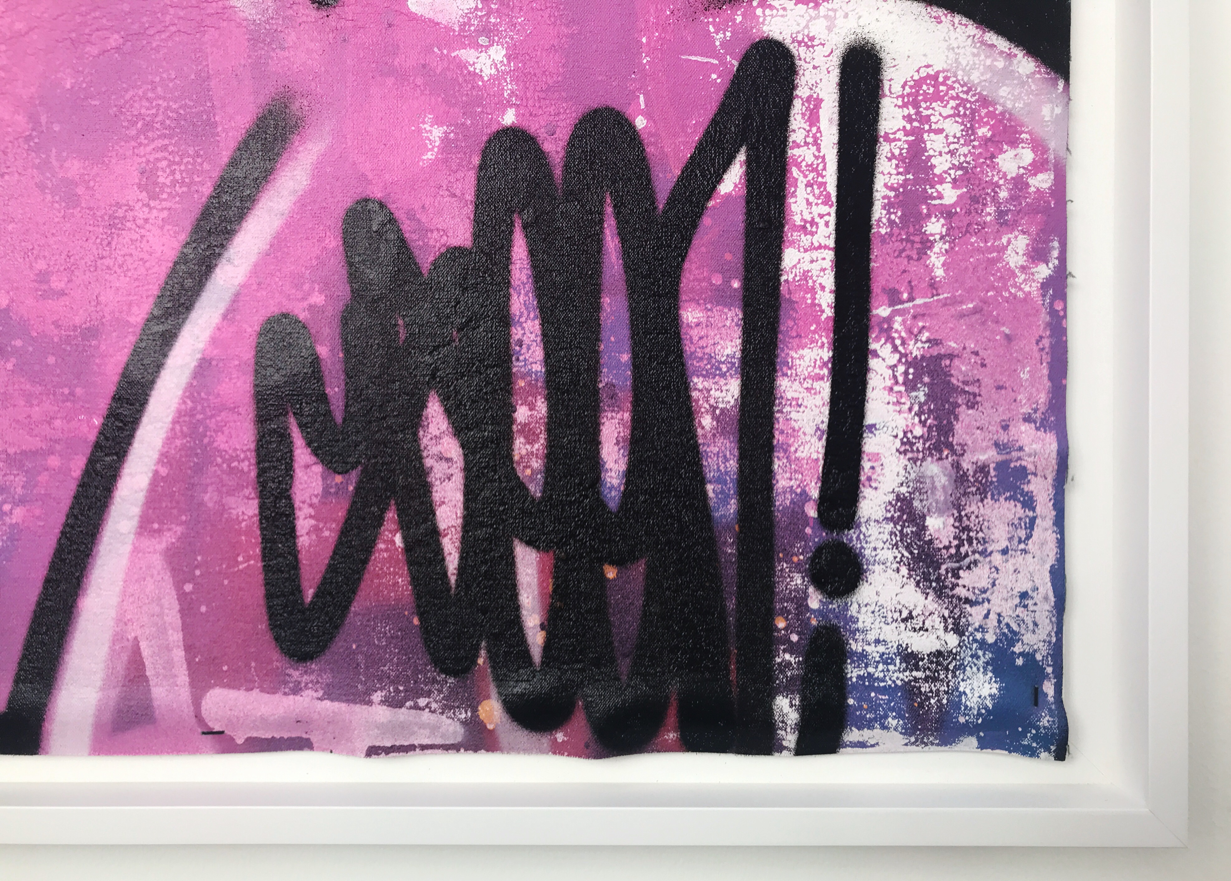 Origineel werk op linnen uit de RAW series van de Godfather of Graffiti, SEEN. Het werk is vervaardigd met gemengde street art technieken op linnen. Het is aan de voorzijde in het werk gesigneerd en aan de achterzijde gesigneerd. Het stuk is bijzonder fraai ingelijst in een houten baklijst met aan de achterzijde een uitsparing zodat de signatuur achter op het doek zichtbaar is.