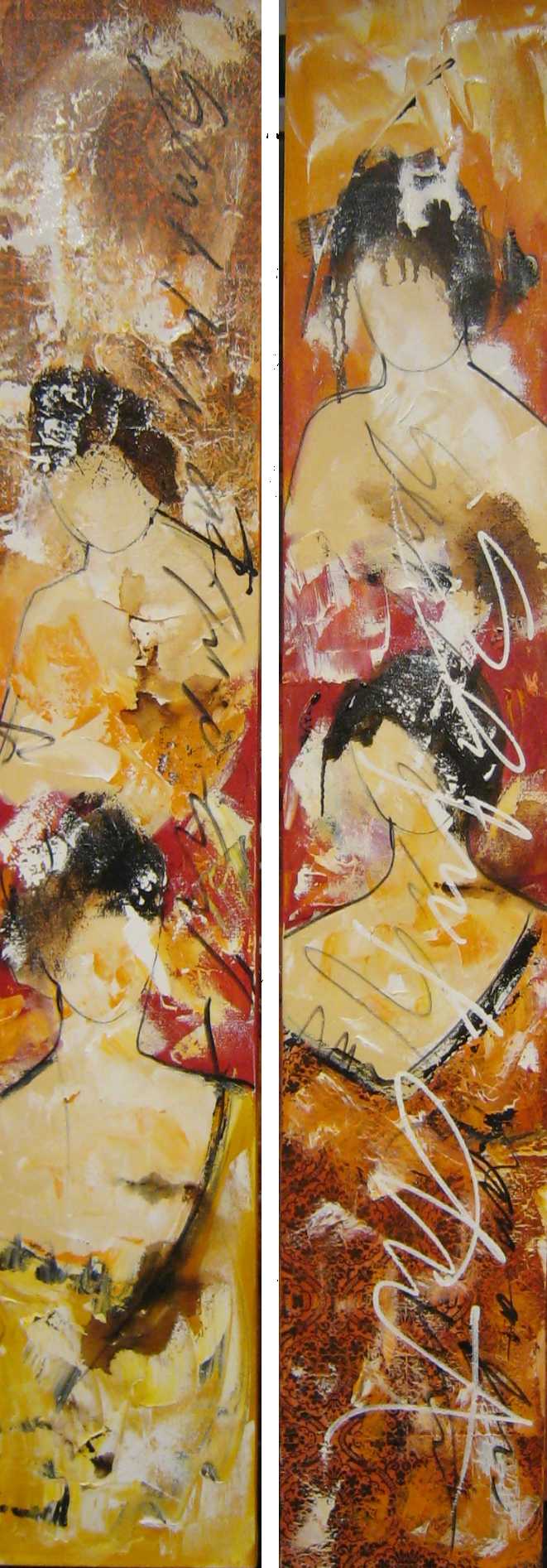 Mooi 2-luik van de kunstenaar Dario Bosa Zijn werk heeft een ongekende kracht en diepte, zowel in kleurgebruik als in figuratie. De kunstenaar combineert zijn prachtige schilderstijl met fraaie afwijkende formaat doeken waardoor het geheel nog spannender wordt om naar te kijken.