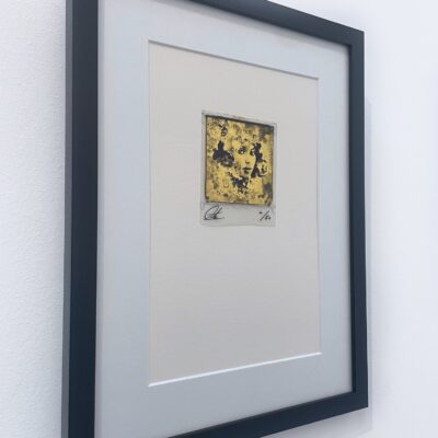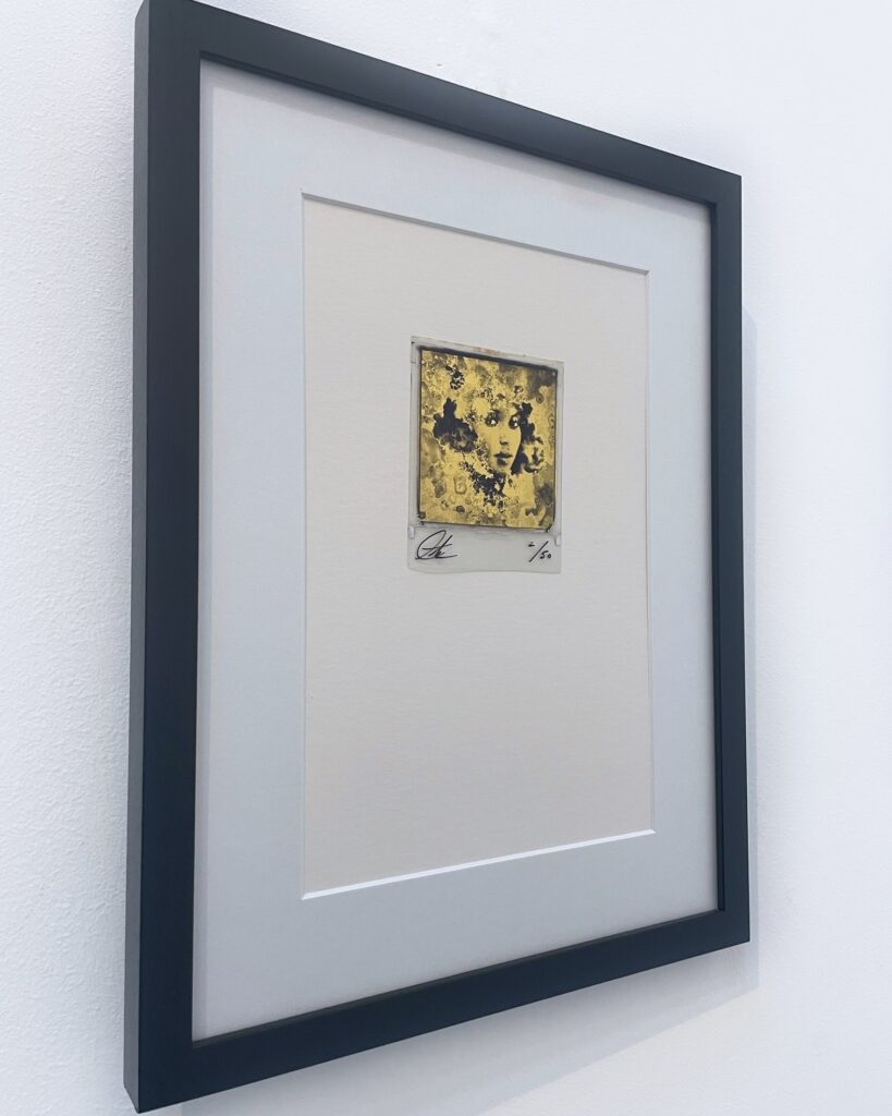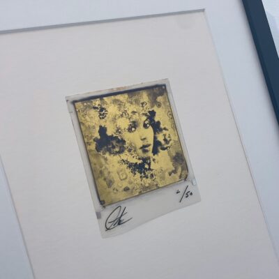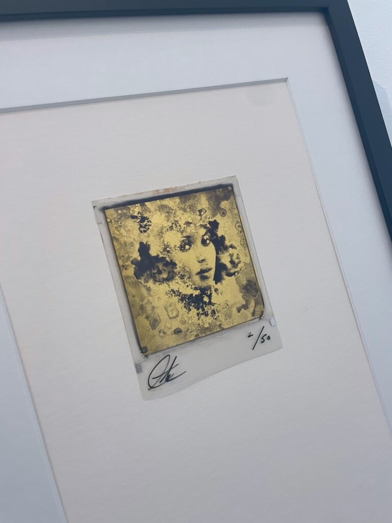 Originele met 24ct bladgoud bewerkte polaroid van Andrew Millar.
