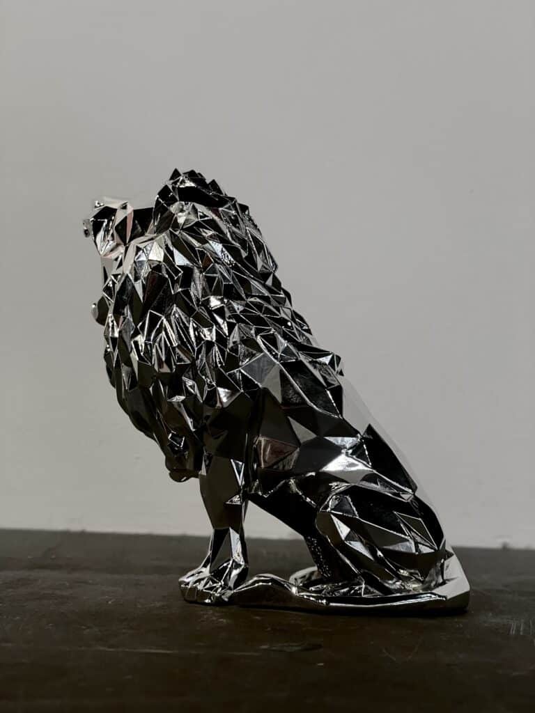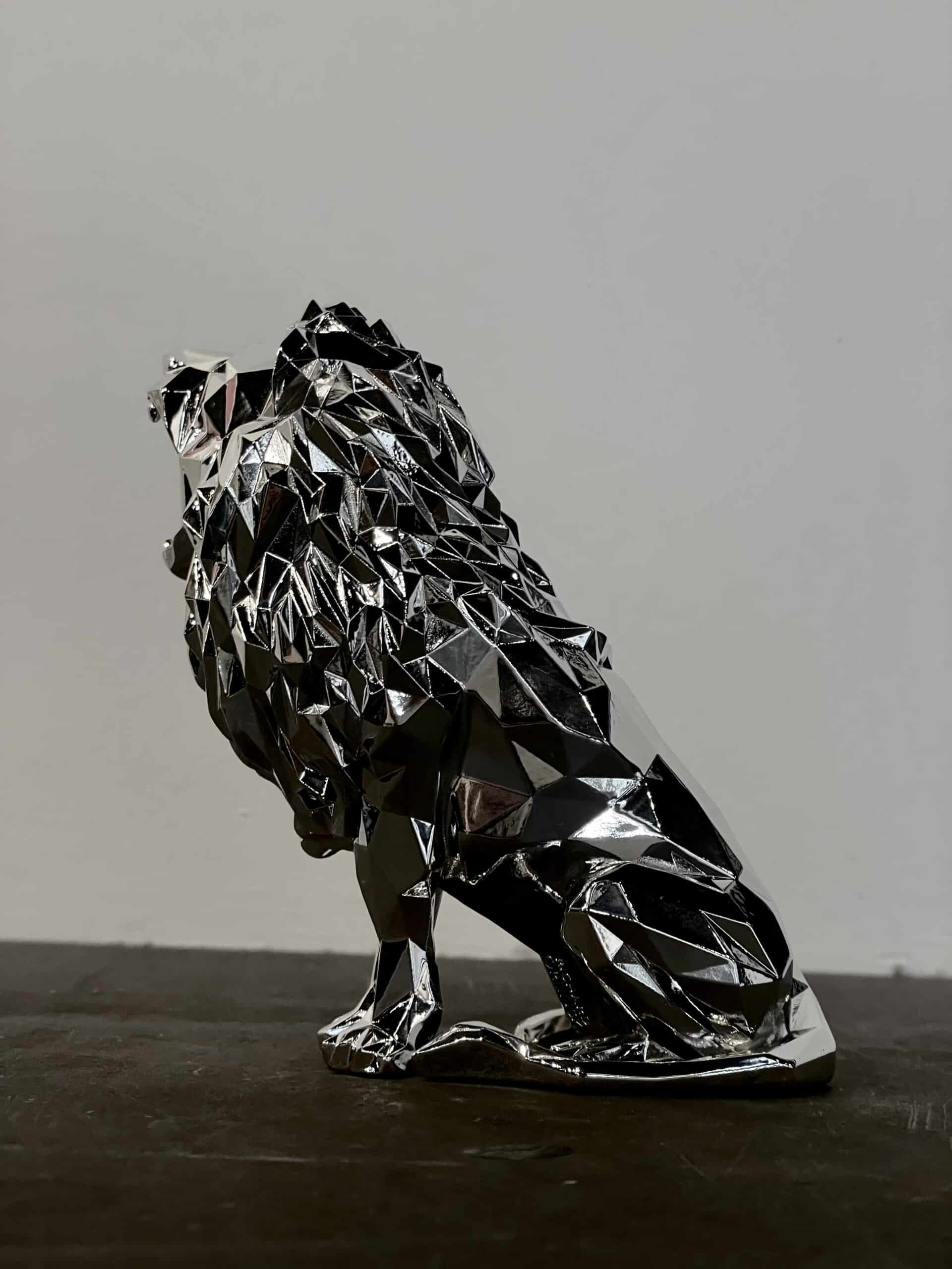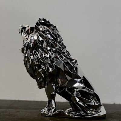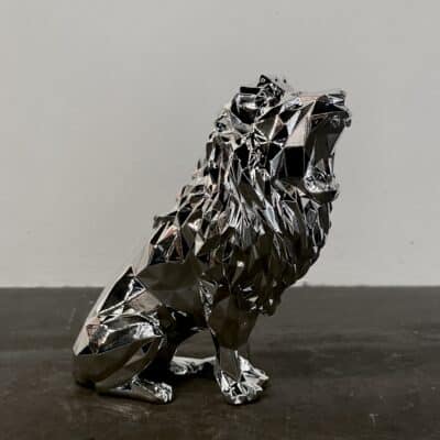 The Roaring Lion by Richard Orlinski is a powerful and imposing sculpture that captures the majestic energy of the king of the jungle. Orlinski’s signature style of sharp lines and facets comes to life in this dynamic representation of a roaring lion, exuding strength, movement, and confidence.