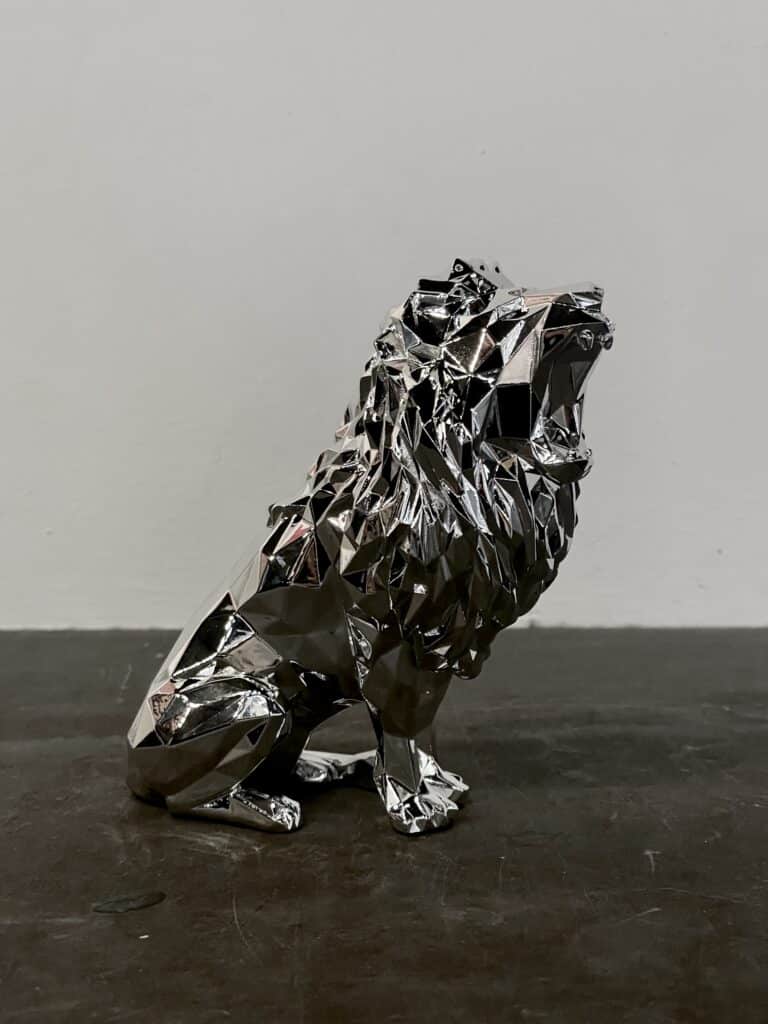 De Roaring Lion van Richard Orlinski is een krachtig en imposant sculptuur die de majestueuze energie van de koning van de jungle vastlegt. Orlinski’s kenmerkende stijl van scherpe lijnen en facetten komt tot leven in deze dynamische representatie van een brullende leeuw, die kracht, beweging en zelfverzekerdheid uitstraalt.