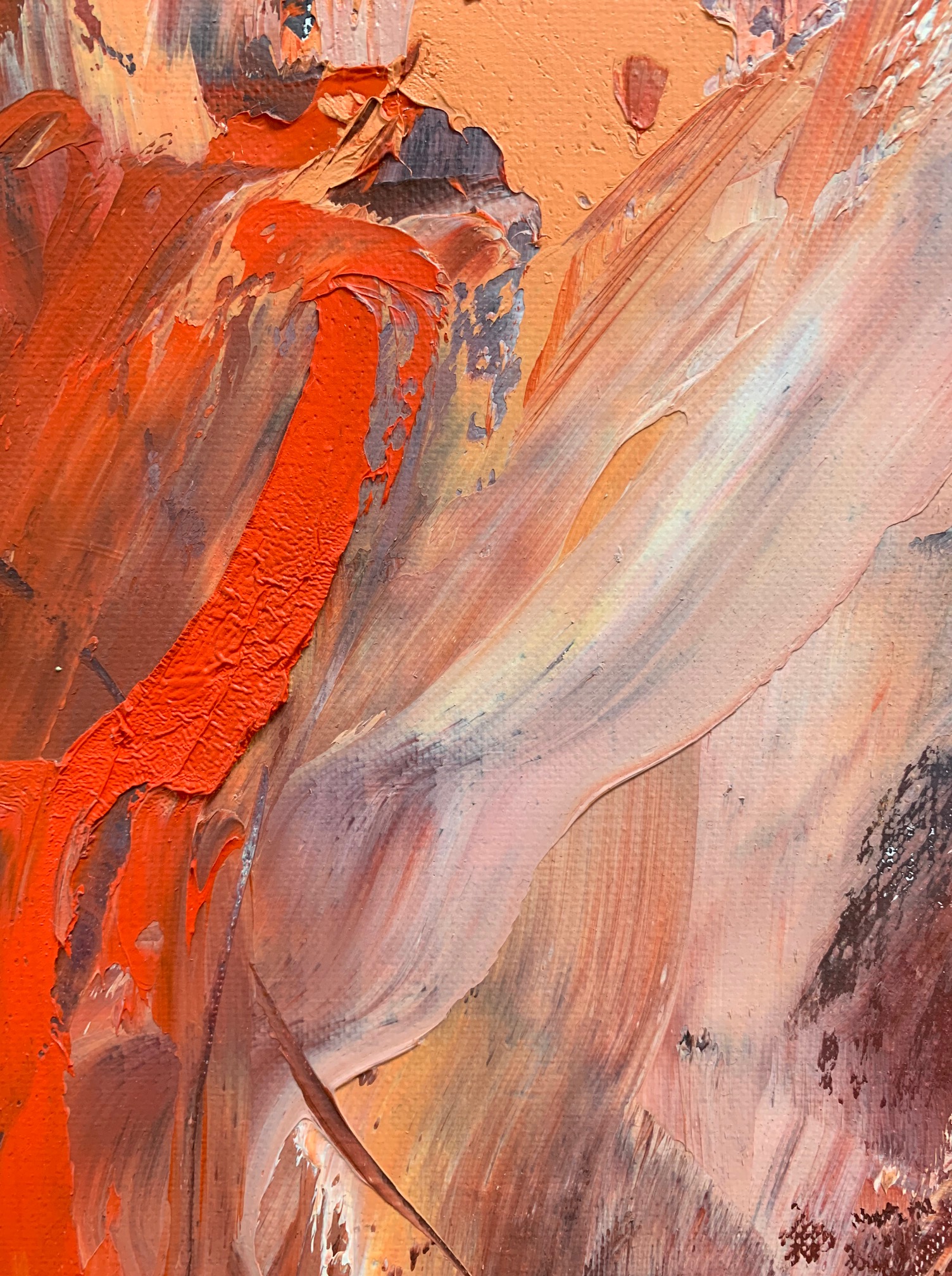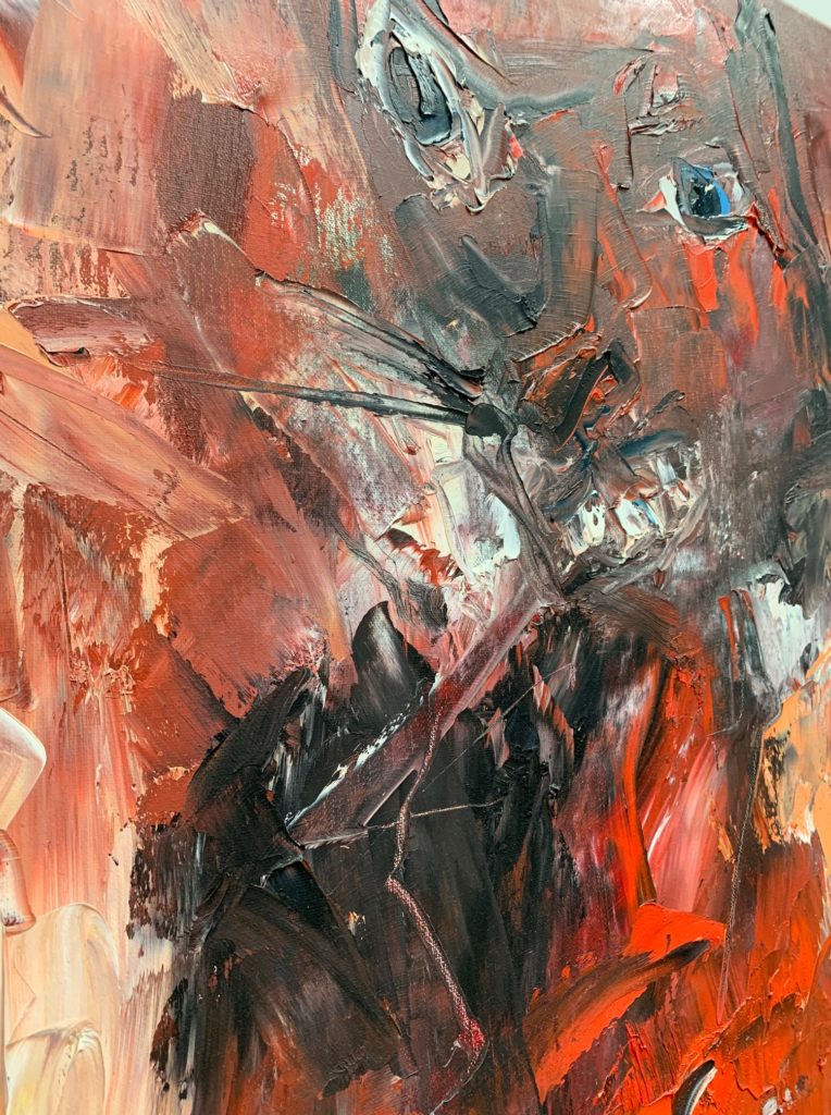De stukken zijn opgebouwd uit dikke lagen olieverf, door de kunstenares prachtig expressief met kwast en spatel op het canvas aangebracht. De ogenschijnlijke chaos in de stukken van Charlotte Molenkamp kent vaak een summiere verwijzing naar zichtbare werkelijkheid: natuur, mens, dier, geabstraheerd en met een uitzonderlijk gevoel, ziel en kwetsbaarheid neergezet.