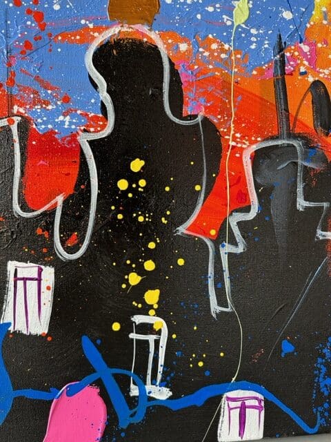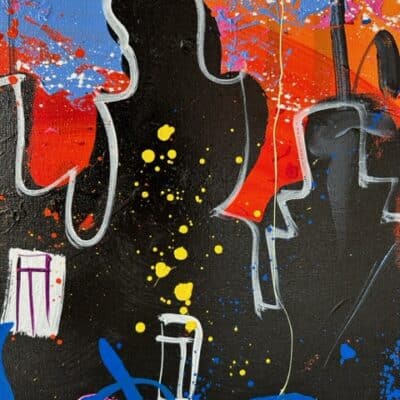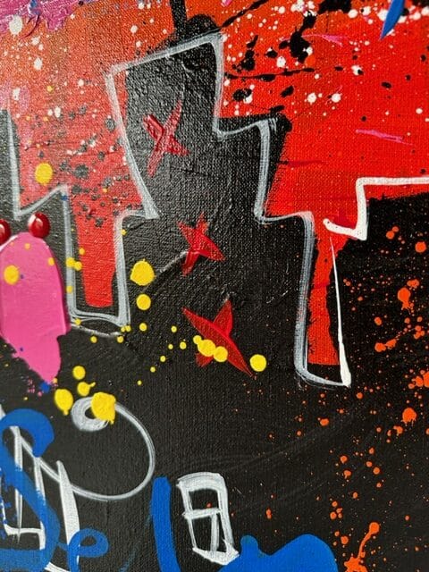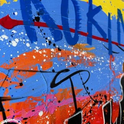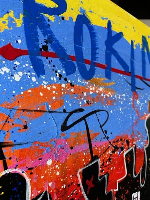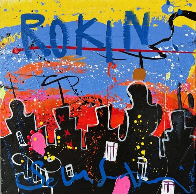 Origineel werk van Selwyn Senatori (2023) in prachtige kleuren. Het stuk is met gemengde technieken opgebouwd met een vlotte, vrije en trefzekere schilderstijl en het krachtige, dynamische kleurgebruik wat zo karakteristiek is voor Senatori’s werk. ‘Rokin’ is vervaardigd op een dubbeldik opgespannen linnen doek waarvan de zijkanten door Selwyn zijn mee geschilderd.