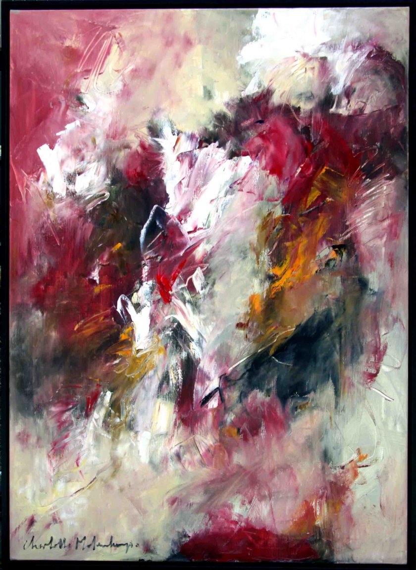 Indrukwekkend origineel werk op linnen van Charlotte Molenkamp uit 2001. Het stuk is vervaardigd met dikke lagen olieverf op een stevig linnen doek en het werk is werkelijk prachtig diep van kleur! Het schilderij is ingelijst in een mooie bijpassende baklijst.