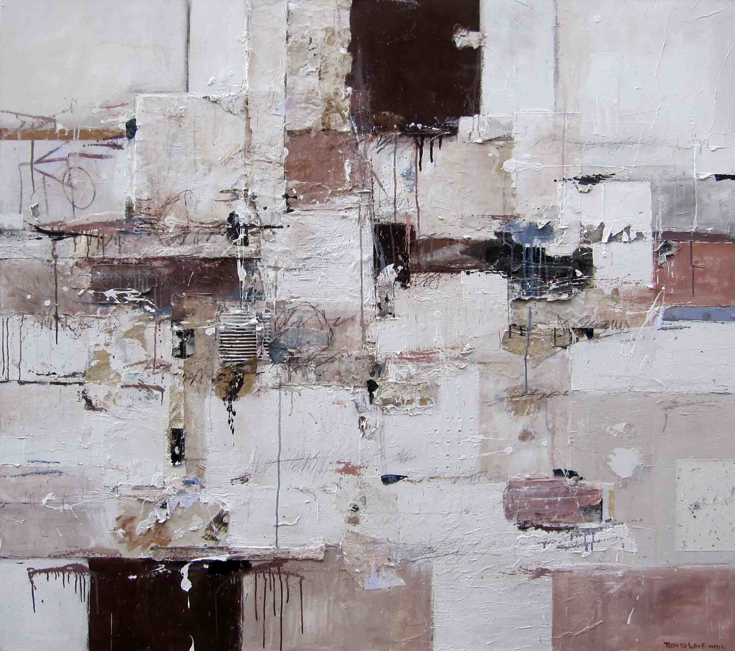 Prachtig groot origineel werk van Ron van der Werf uit 2009. Het stuk is op een stevig linnen doek vervaardigd, opgespannen op een dubbeldik spieraam. De kunstenaar heeft een keur aan gemengde technieken gebruikt om het werk te creëren waardoor er een fraai en krachtig spanningsveld van reliëf, materie en figuratie is ontstaan.