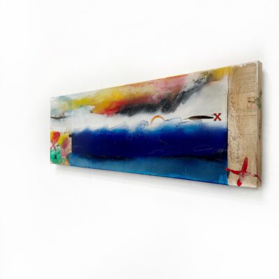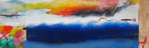 Origineel werk op linnen van Theo Koster uit 2009. Het stuk is bijzonder mooi; krachtige dynamische figuratie, fraai gebruik van gemengde technieken & materie en zeer uitgesproken helder en diep kleurgebruik. Het stuk is door Theo Koster vervaardigd op een stevig dubbeldik opgespannen linnen doek waarvan de zijkanten zijn meegeschilderd.