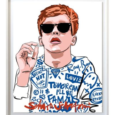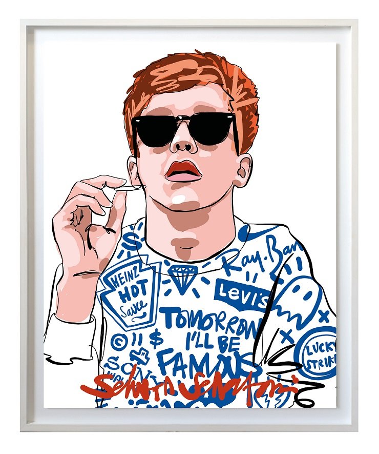 Werk van Selwyn Senatori. Afkomstig van de Tomorrow I’ll Be Famous Serie. Het werk uit deze collectie is digitaal vervaardigd en gedrukt op perspex waarna deze hand gesigneerd is en ingelijst in een witte lijst achter museumglas.