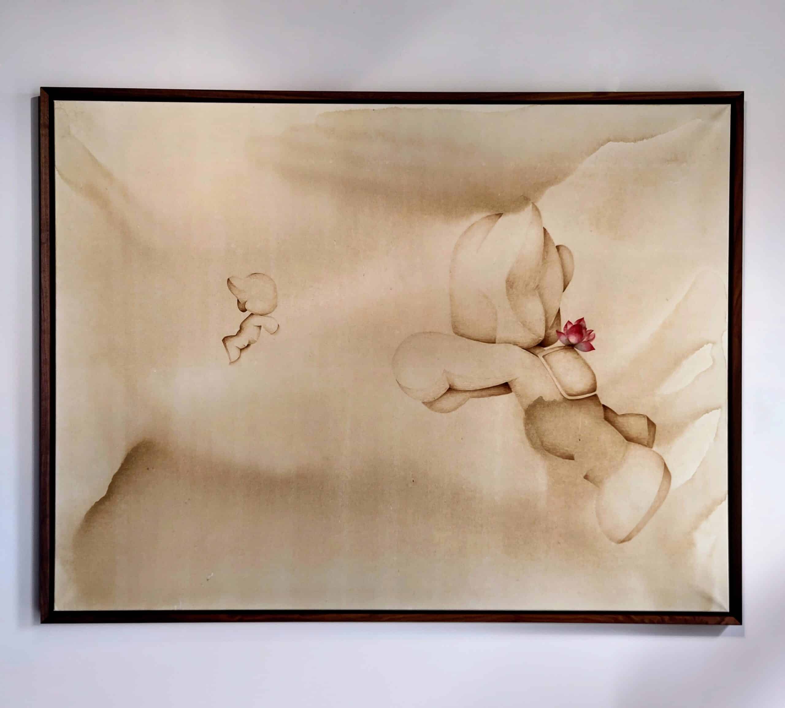 De Yuki-schilderijen verkennen de subtiele interactie tussen het verleden en het heden. Elk werk toont vaak twee figuren — Yuki en een weerspiegeling van Yuki — als symbool voor de complexe relatie die we hebben met onze eigen geschiedenis. In deze momenten van verbinding zijn last en groei met elkaar verweven; de lessen die we meedragen, vormen de weg die voor ons ligt. Gemaakt met acrylverf en transparante lagen weerspiegelt de techniek de gelaagdheid van herinneringen, waardoor er bij elke penseelstreek diepte ontstaat.