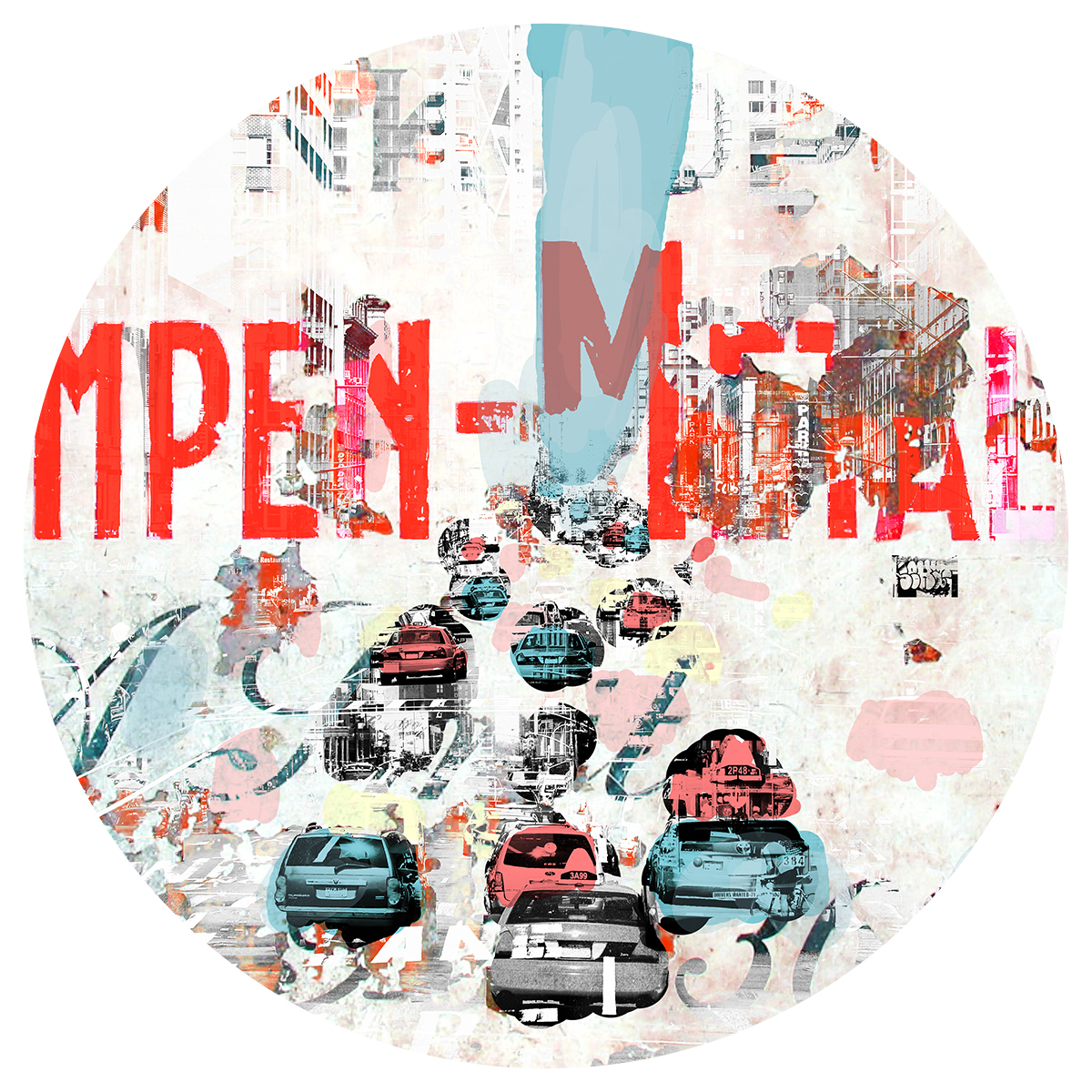 “This is where it all started. What is now the contemporary products brand Paco Raphael, originates from these paintings. In these paintings, pictures Paco takes of cityscapes all over the world, are mixed with urban industrial life in the 1950ies, 60ies and 70ies, by adding images of old cinema, music, typography, erotica and architecture taken from posters. The print is finished by hand with paint, pen and stencils to result in a vibrant, mixed media painting that is very recognizable as a Paco Raphael artwork.”