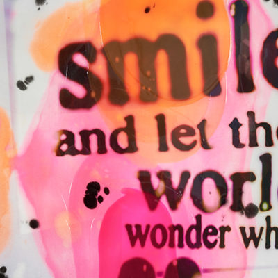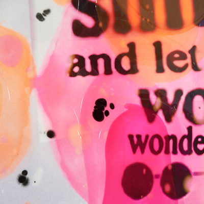 Mixed media monotype op linnen van de befaamde Duitse kunstenaar Jörg Döring. Het werk is door de kunstenaar opgebouwd uit fraaie heldere kleuren gecombineerd met foto’s, ruw geschilderde oppervlaktes, typografie en geschreven teksten. De monotypes zijn in een volledig met de hand vervaardigde oplage van slechts 9 stuks vervaardigd waardoor elk stuk volledig uniek is.