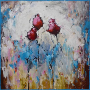 Carolina Paulussen heeft in de zomer van 2011 weer een aantal bijzondere stukken vervaardigd, waar dit er 1 van is. De werken zijn door de kunstenares met gemengde technieken op stevige linnen doeken opgezet en kennen een prachtige dynamiek en een intrigerend spel van gelaagdheid, subtiele figuratie en kleurgebruik.