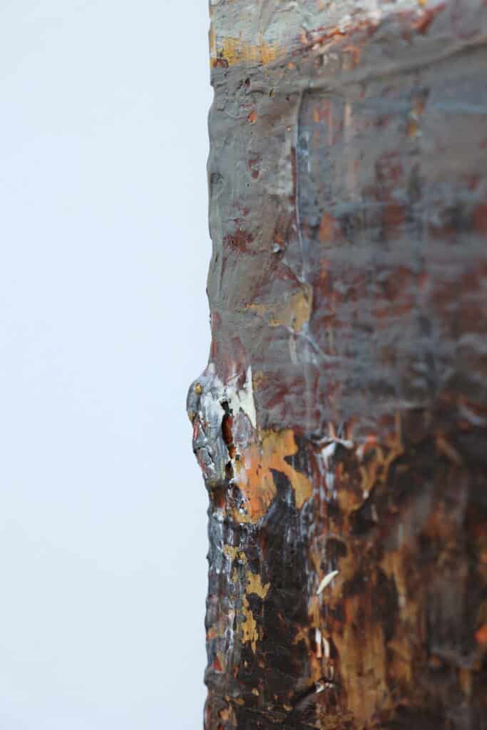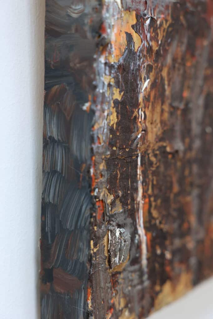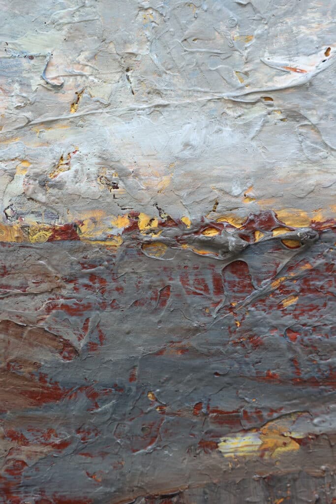 Het werk van Yolanda Philippens wordt gekenmerkt door een krachtig en intrigerend spel van materie, techniek en abstracte expressie. De kunstenares laat zich bij het vervaardigen van haar werk vooral inspireren door verweerde en vervallen gebouwen, muren en landschap impressies. Philippens ervaart de natuur als een groot kunstwerk. Landschapsgezichten van akkers, bloemenvelden, besneeuwde velden en bomen. Sporen van oude bouwwerken, aangespoelde schepen en schroot: de schoonheid van verval door dikke lagen olieverf vormgegeven.