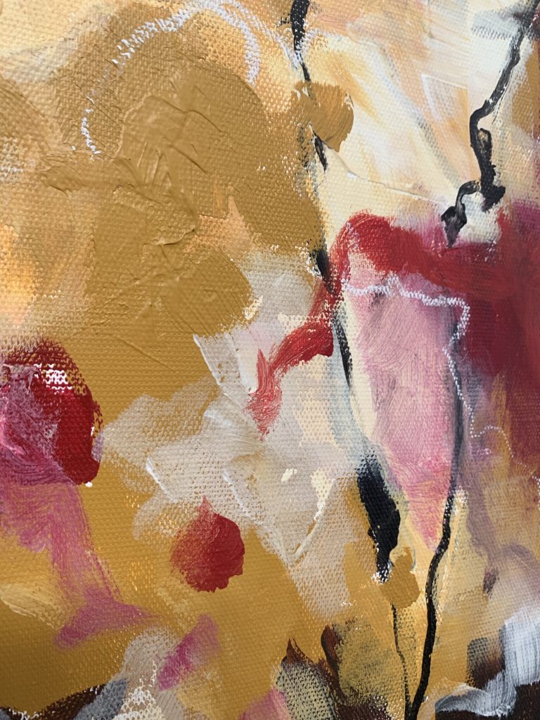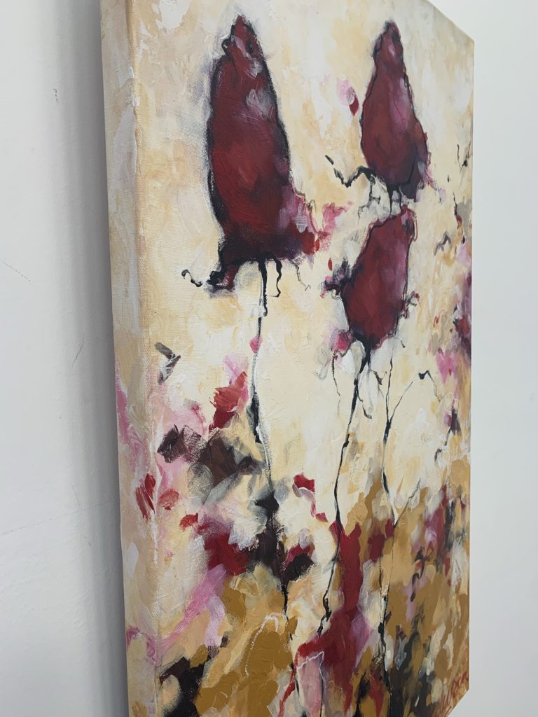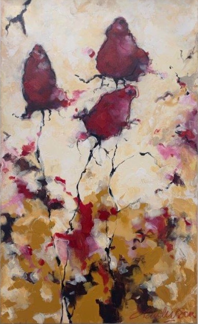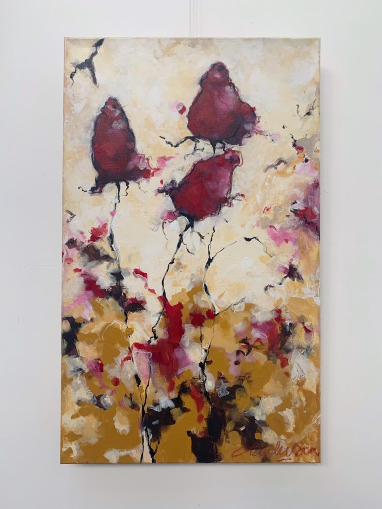Origineel werk van Carolina Paulussen. De werken zijn door de kunstenares met gemengde technieken op stevige linnen doeken opgezet en kennen een prachtige dynamiek en een intrigerend spel van gelaagdheid, subtiele figuratie en kleurgebruik.