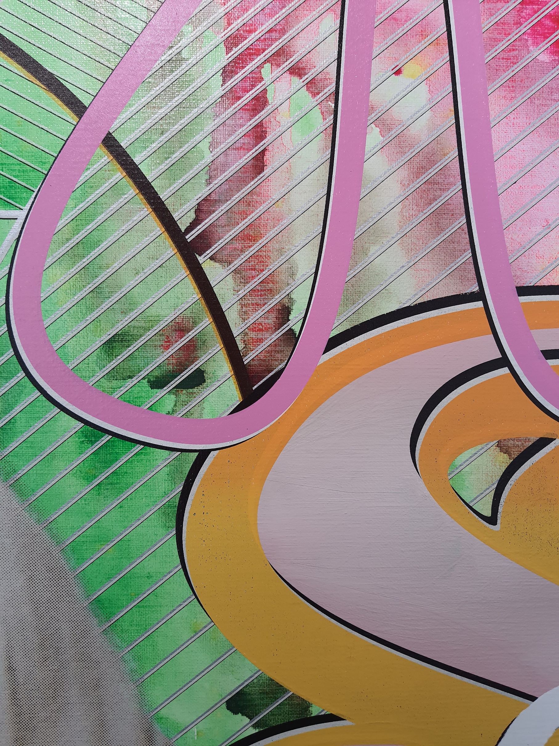 De stukken zijn opgespannen op een stevig dubbeldik frame en doorgeschilderd op de zijkanten.