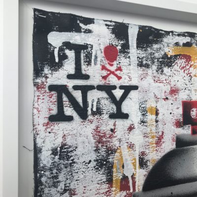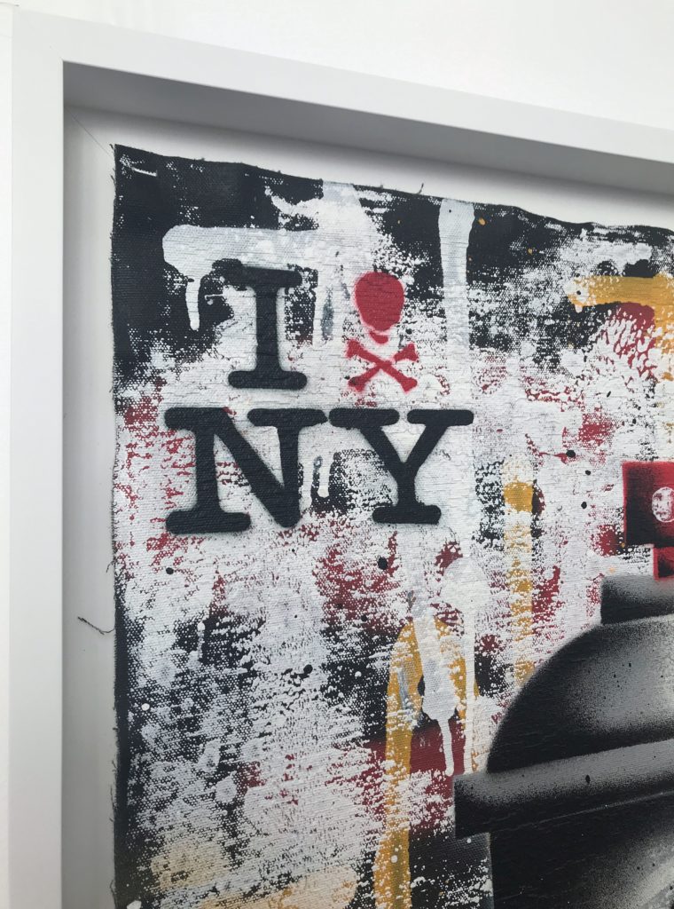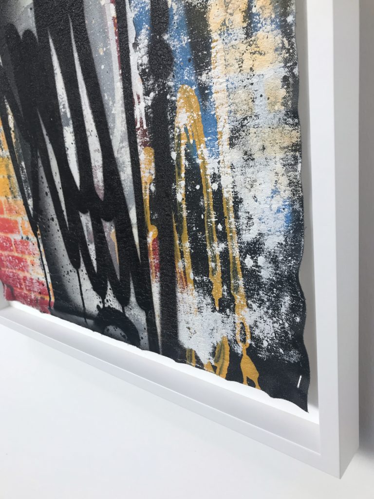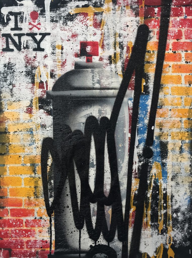 Origineel werk op linnen uit de Spraycan series van de Godfather of Graffiti, SEEN. Het werk is vervaardigd met gemengde street art technieken op linnen. Het is aan de voorzijde in het werk gesigneerd en aan de achterzijde gesigneerd. Het stuk is bijzonder fraai ingelijst in een houten baklijst met aan de achterzijde een uitsparing zodat de signatuur achter op het doek zichtbaar is.