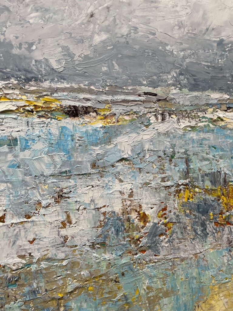 Het werk van Yolanda Philippens wordt gekenmerkt door een krachtig en intrigerend spel van materie, techniek en abstracte expressie. De kunstenares laat zich bij het vervaardigen van haar werk vooral inspireren door verweerde en vervallen gebouwen, muren en landschap impressies. Philippens ervaart de natuur als een groot kunstwerk. Landschapsgezichten van akkers, bloemenvelden, besneeuwde velden en bomen. Sporen van oude bouwwerken, aangespoelde schepen en schroot: de schoonheid van verval door dikke lagen olieverf vormgegeven.