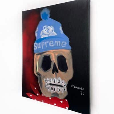 Senatori verbindt met ‘Look at Me Now’ de Gouden Eeuw met het hedendaagse leven. Een hommage aan twee ogenschijnlijke tegenpolen. Een fusie van verleden en heden. ‘Look at Me Now’ is een visuele reis waarin Senatori een brug slaat tussen verschillende tijdperken en maatschappelijke contexten. Op geheel eigentijdse wijze vertrouwt hij pre-millennium artefacten, Pop-cultuur en de consumptie maatschappij toe aan het doek waarbij de kunstenaar met een diepzwarte achtergrond en een gouden randje een gevoel van nostalgie en herkenning weet op te roepen.