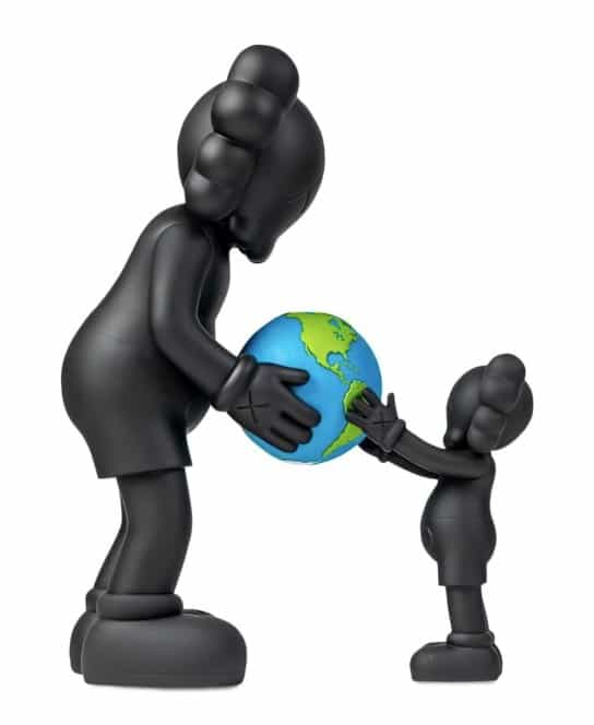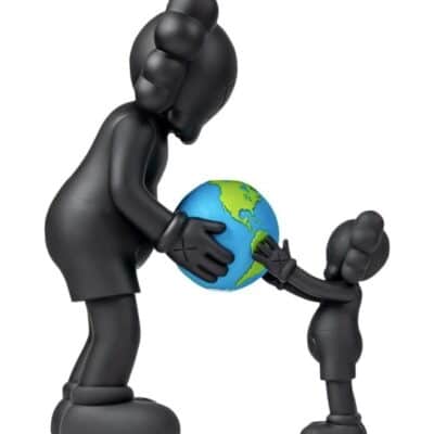 KAWS is using his Companion characters to bring the world together with the release of his newly designed THE PROMISE Vinyl Figures. The release of THE PROMISE Vinyl Figures came right in time before the 2022 Holiday season. The limited edition vinyl figure shows a large and small companion character holding a model of Earth. The KAWS THE PROMISE Vinyl Figure measures 13.39″ x 6.3″ x 9.45″ (34 x 16 x 24 cm).