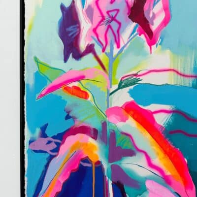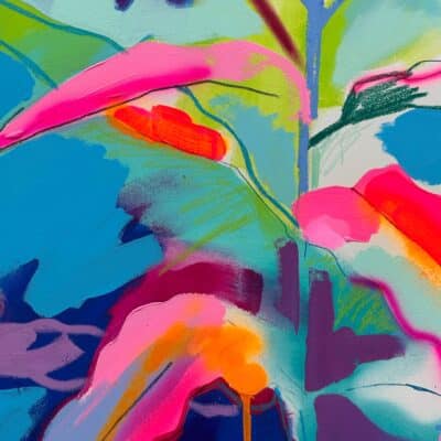 Fowler takes inspiration from exotic and migratory plants reflecting his own DNA, from west Africa, via the Caribbean to the UK. He subverts traditional and contemporary methods of applying oil, acrylic, spray, enamel and graffiti inks using brushes, different aperture caps and marker paint mops to orchestrate purposeful marks, strokes, drips, scrapes and smears across the canvas whilst constructing his exciting and dynamic artworks.