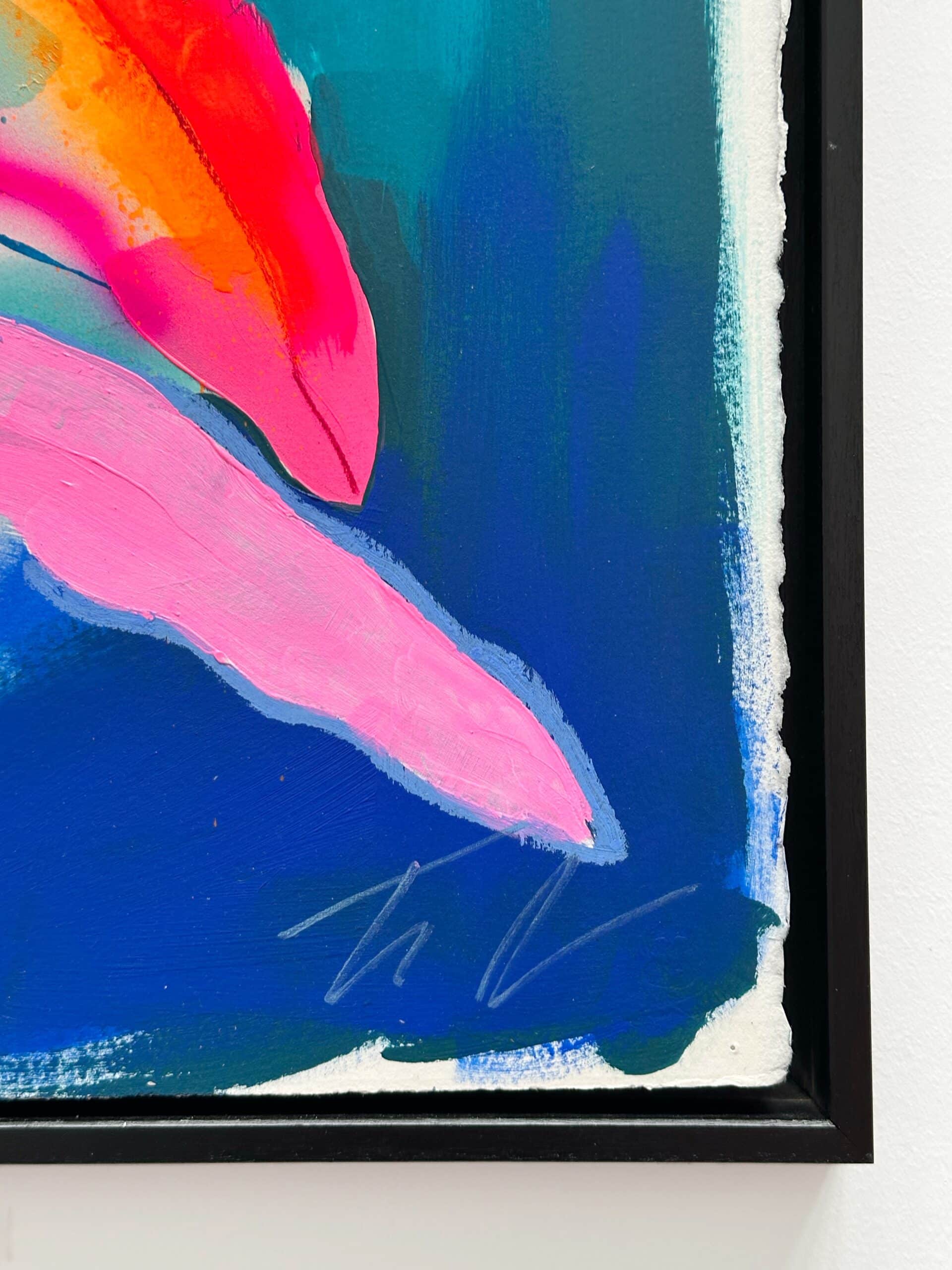 Fowler takes inspiration from exotic and migratory plants reflecting his own DNA, from west Africa, via the Caribbean to the UK. He subverts traditional and contemporary methods of applying oil, acrylic, spray, enamel and graffiti inks using brushes, different aperture caps and marker paint mops to orchestrate purposeful marks, strokes, drips, scrapes and smears across the canvas whilst constructing his exciting and dynamic artworks.