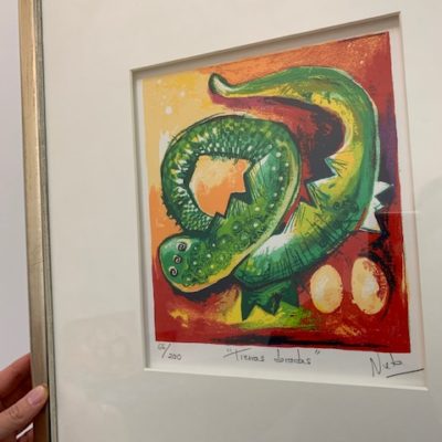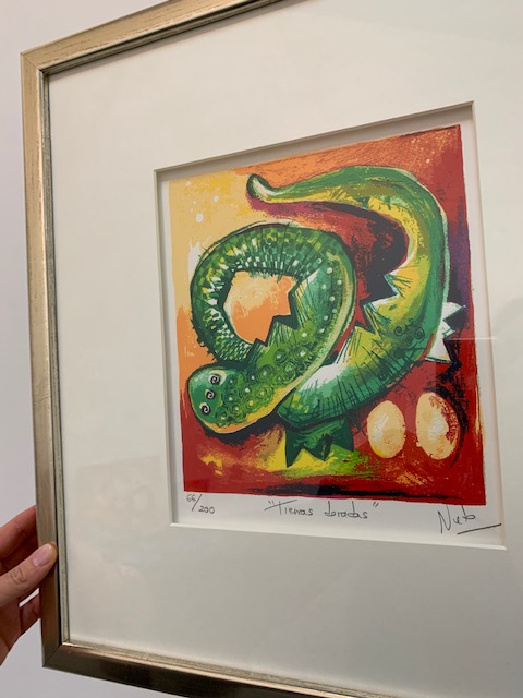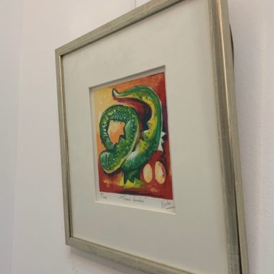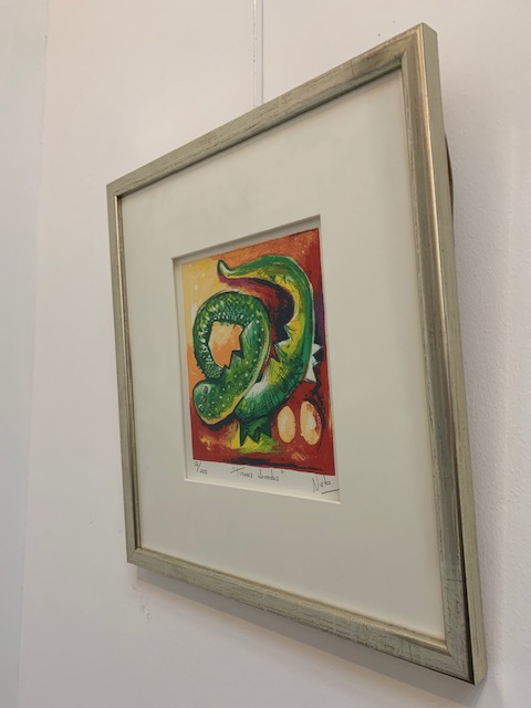 Zeefdrukserie van Angeles Nieto uit 2006. De stukken zijn op dik zeefdrukpapier vervaardigd en de zeefdrukken zijn ingelijst in mooie handgemaakte zilverkleurige lijsten.