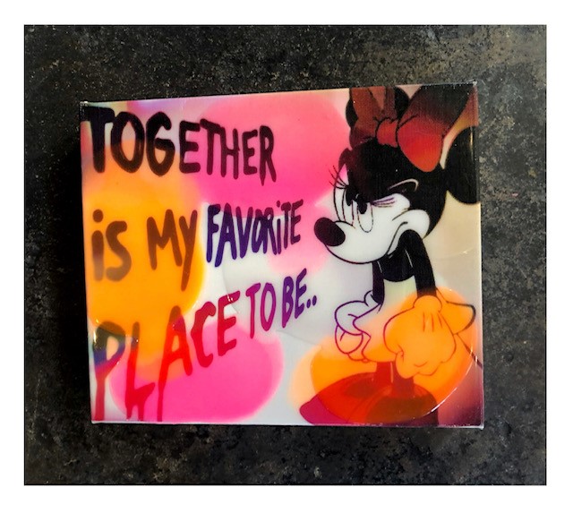 1 Van een fraaie serie kleine werkjes door Jorg Doring aangeduid als ‘Crazy little things’. De stukken uit deze serie zijn door de bekende Duitse popart kunstenaar met gemengde technieken vervaardigd op kleine linnen ‘box panelen’ waardoor de stukken als een soort objecten aan de muur komen.
