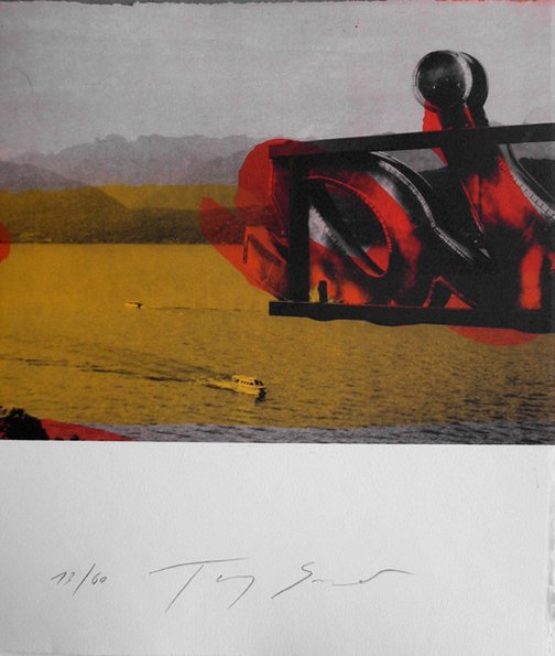 Prachtige kleuren-ets op papier van de befaamde Franse kunstenaar Tony Solié. Tony Soulié bewerkt thematisch geschoten fotografie van zijn wereldreizen met gemengde technieken en creeert aldoende een unieke eigen werkelijkheid. Dit stuk komt uit een serie van 6 werken. De etsen zijn fraai zwevend opgelegd tegen een witte achtergrond en vervolgens ingelijst in een exclusieve bijpassende handgemaakte zilverkleurige lijst voorzien van zwevende passe-partouts.