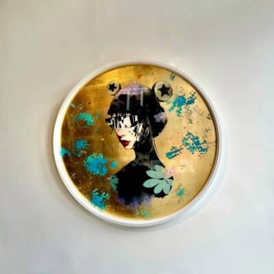 Millar uses a combination of instant film, gold and silver leaf, and paint. Through a blend of techniques, he creates delicate, detailed collage-like works with an intriguing mix of reality and fantasy.