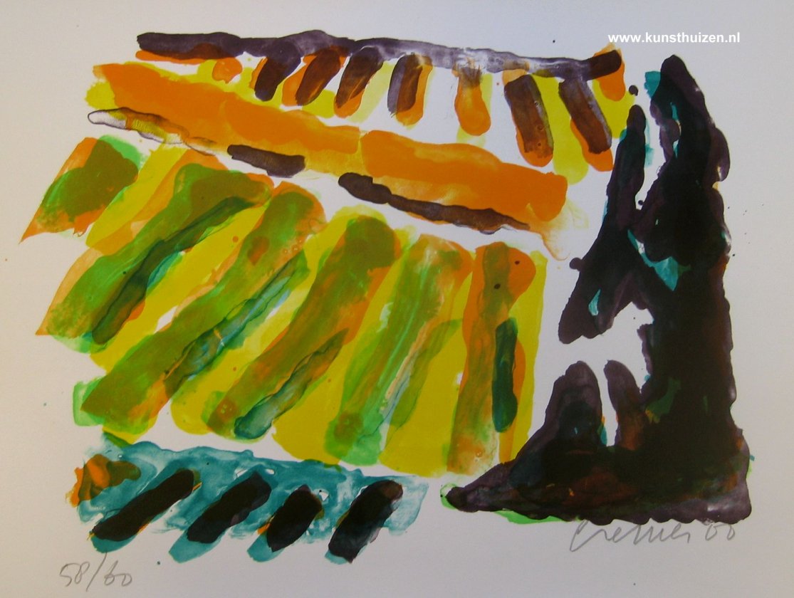 Zeer zeldzame zeefdruk uit 2000 van Jan Cremer uit de Toscane-serie. Het werk is door de kunstenaar vervaardigd in een zeer beperkte oplage van slechts 60 stuks. u zult dit werk ook niet snel nog ergens tegenkomen. Prachtige drukgangen op dik zeefdruk papier. Het werk is mooi ingelijst in een handgemaakte zilverkleurige lijst voorzien van een zwevend passe-partout.