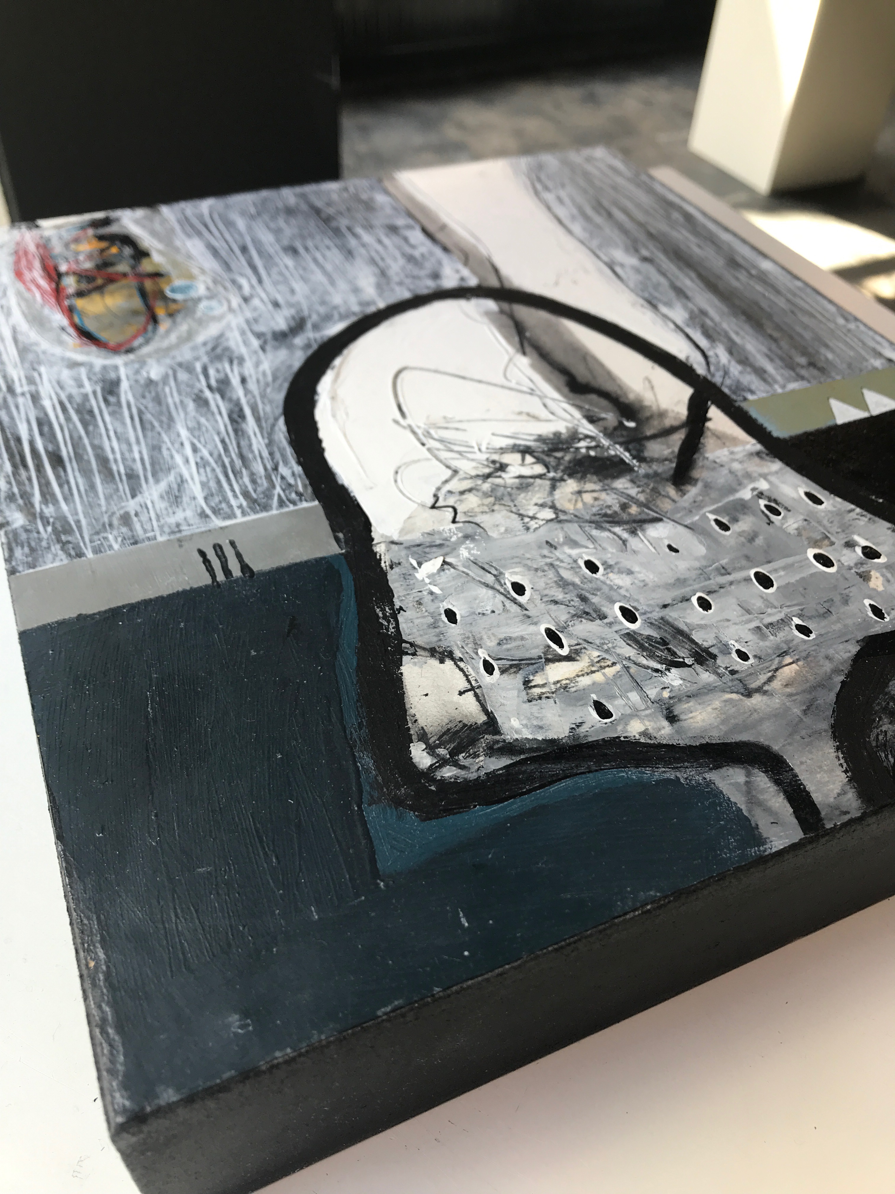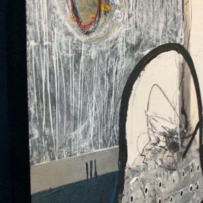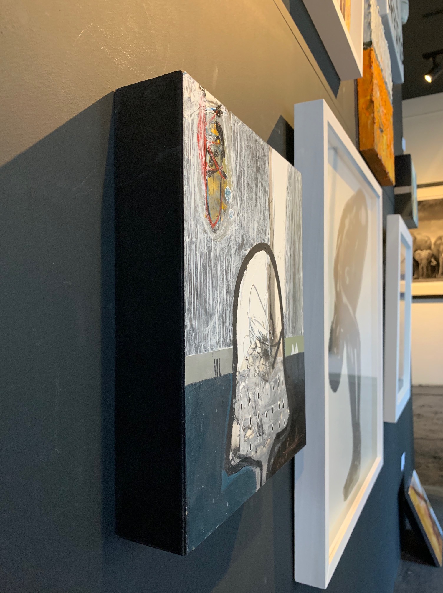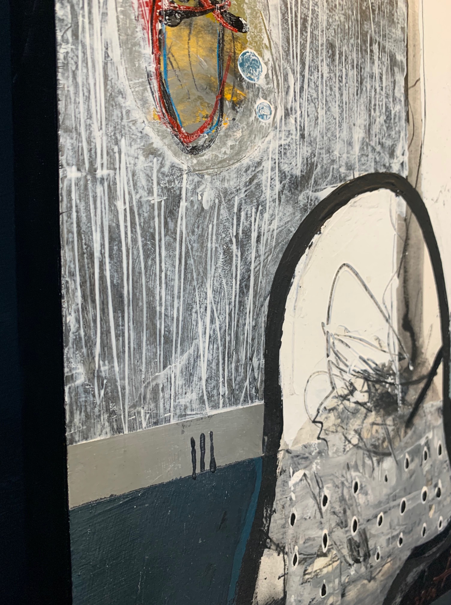 Prachtig origineel werk op paneel van de in Nederland woonachtige Hongaarse kunstenaar Kantcho Kanev. Het stuk is vervaardigd met gemengde technieken (olie, acryl en inkten) op een stevig handgemaakt boxpaneel. Het stuk is doordrenkt van details en symboliek en contrastrijk van kleuropbouw.