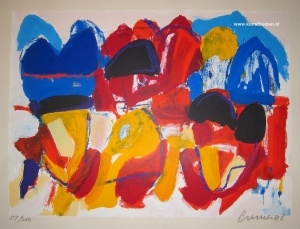 Mooie zeldzame, wat oudere, zeefdruk van Jan Cremer uit 1998. De zeefdruk is fraai gedrukt met gebruikmaking van heldere transparante inkten. Het werk is ingelijst in een mooie handgemaakte zilverkleurige lijst voorzien van een “zwevend”” passe-partout.”””