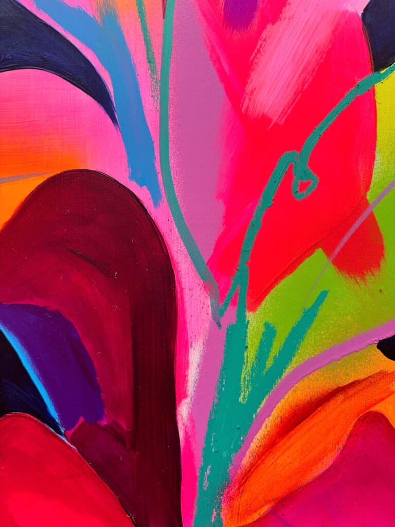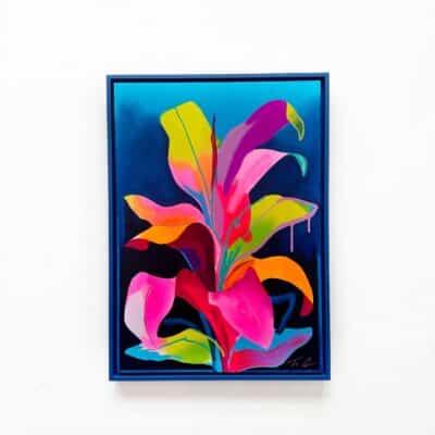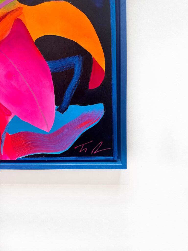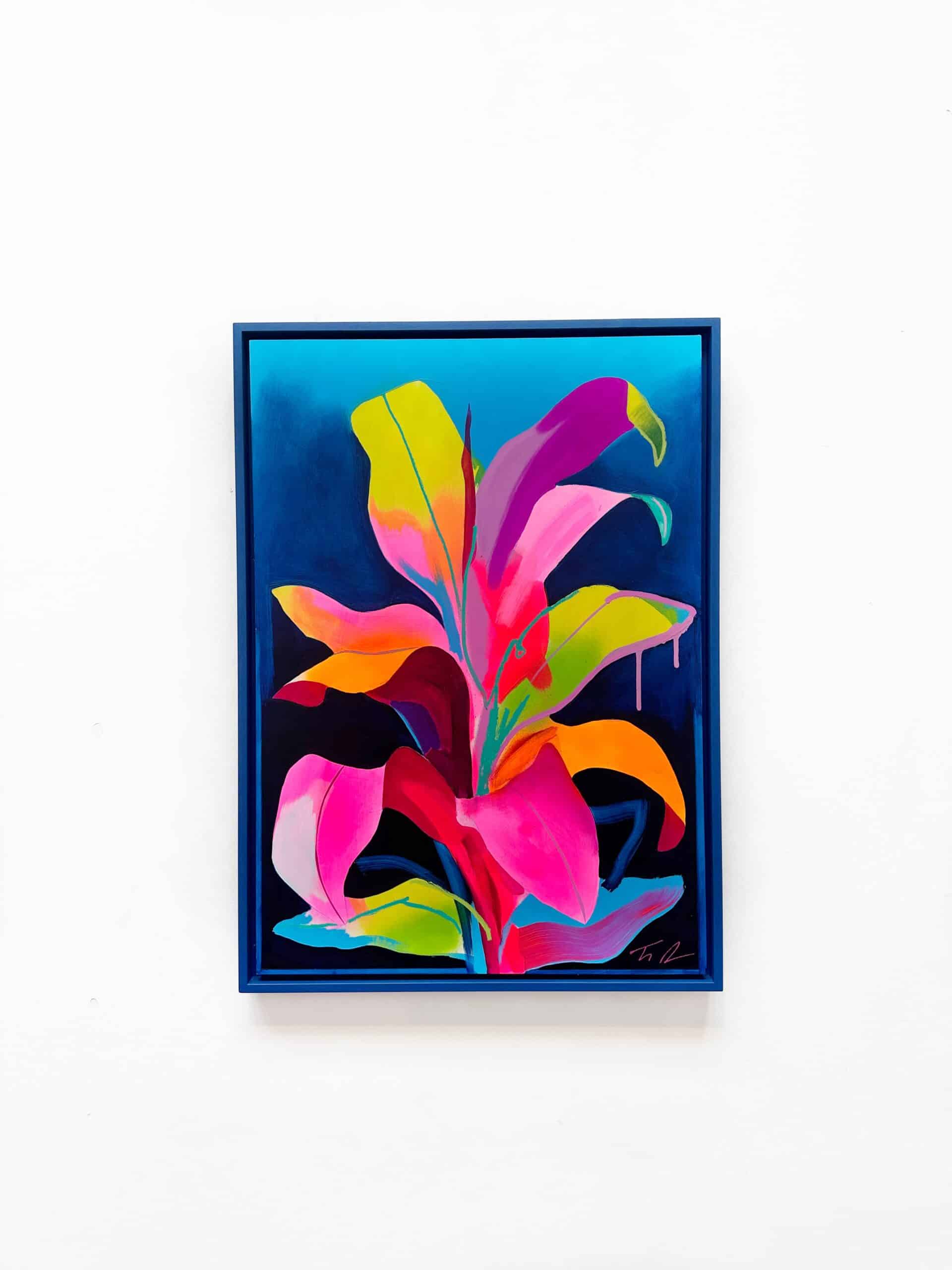 Fowler takes inspiration from exotic and migratory plants reflecting his own DNA, from west Africa, via the Caribbean to the UK. He subverts traditional and contemporary methods of applying oil, acrylic, spray, enamel and graffiti inks using brushes, different aperture caps and marker paint mops to orchestrate purposeful marks, strokes, drips, scrapes and smears across the canvas whilst constructing his exciting and dynamic artworks.