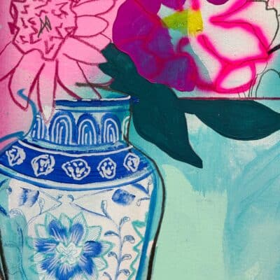 Fowler takes inspiration from exotic and migratory plants reflecting his own DNA, from west Africa, via the Caribbean to the UK. He subverts traditional and contemporary methods of applying oil, acrylic, spray, enamel and graffiti inks using brushes, different aperture caps and marker paint mops to orchestrate purposeful marks, strokes, drips, scrapes and smears across the canvas whilst constructing his exciting and dynamic artworks.
