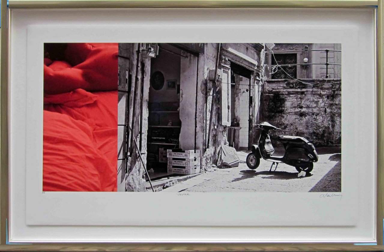 1 van een fraaie kleine serie groot formaat foto’s van de Franse kunstenaar François Berthier. De foto’s zijn in een zeer beperkte oplage van 5 stuks ontwikkeld. De foto’s zijn schitterend van scherpte en diepte en toch ook weer heel speels door de ingebrachte kleur-accenten. Stillevens vereeuwigd door het kunstzinnige oog van de fotograaf. De foto’s zijn genummerd en gesigneerd en zwevend opgelegd ingelijst in handgemaakte zilverkleurige lijsten voorzien van museum glas.