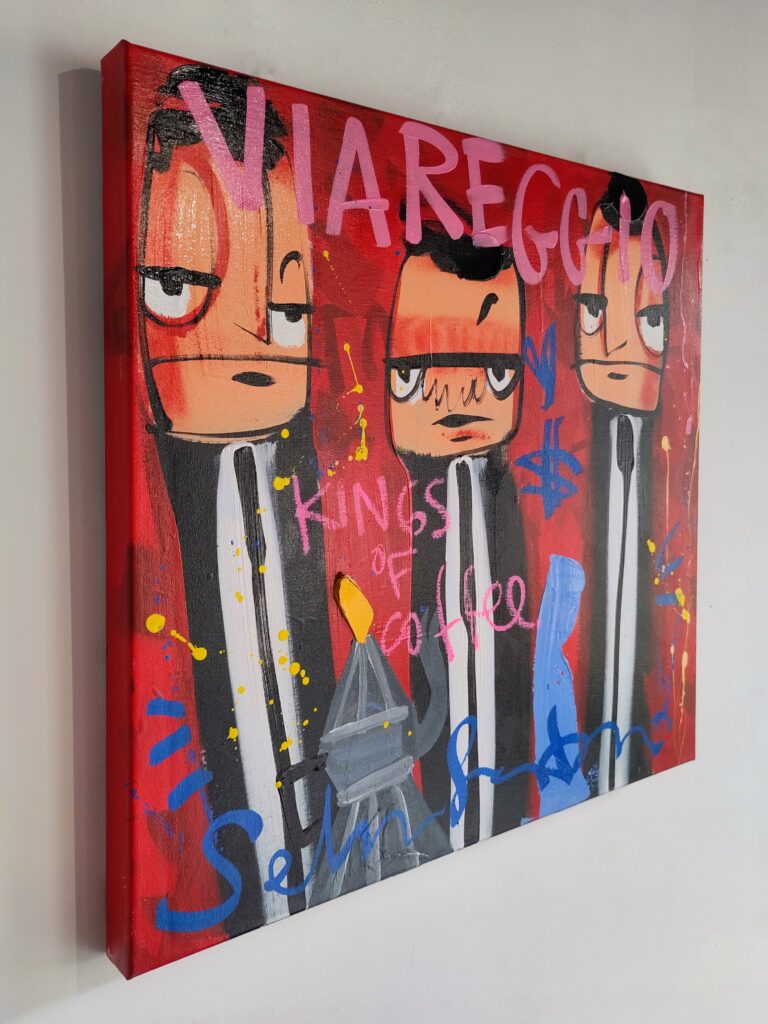 Origineel werk van Selwyn Senatori (2023) in prachtige kleuren. Het stuk is met gemengde technieken opgebouwd met een vlotte, vrije en trefzekere schilderstijl en het krachtige, dynamische kleurgebruik wat zo karakteristiek is voor Senatori’s werk. ‘Viareggio’ is vervaardigd op een dubbeldik opgespannen linnen doek waarvan de zijkanten door Selwyn zijn mee geschilderd.