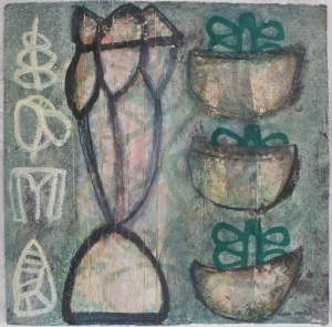 1 van een prachtige serie werken van Anna Verrijt, vervaardigd in een gespecialiseerd atelier in India. De basis voor de werken vormt dik 1000(!) grams ter plaatse handgeschept kartonpapier. De bladen zijn door de kunstenares met gemengde technieken en reliefspecie bewerkt en opgebouwd waarbij Anna Verrijt zich goed heeft laten inspireren door de daar voorhanden zijnde unieke materialen, kleurpigmenten en nieuwe technieken. De stukken zijn opgebouwd uit vele transparante lagen, die allemaal min of meer zichtbaar zijn en zo is prachtig de ontstaansgeschiedenis van het kunstwerk af te lezen.