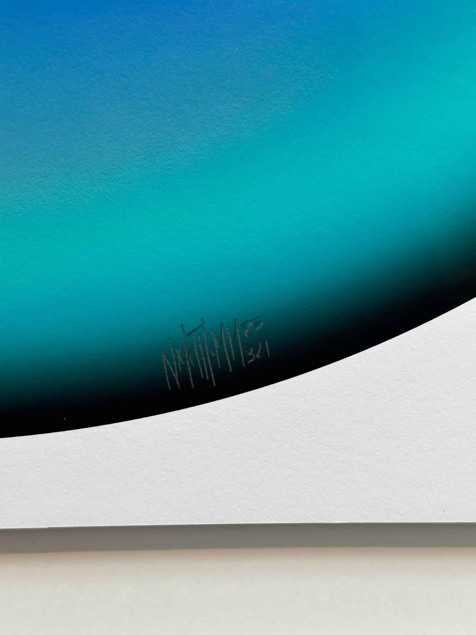 With deep blue and green gradients and a luminous sense of depth, Thomm creates a meditative visual experience focused on perception. The balance between digital precision and artistic control makes this signed and numbered work a refined contemporary statement for any interior.