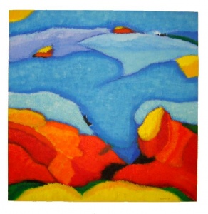 Fraai origineel paneel van Saskia Bremer uit 1996. Fris en helder kleurgebruik zoals we van deze bijzondere kunstenares gewend zijn! Het stuk is mooi ingelijst in een handgemaakte zilverkleurige lijst.