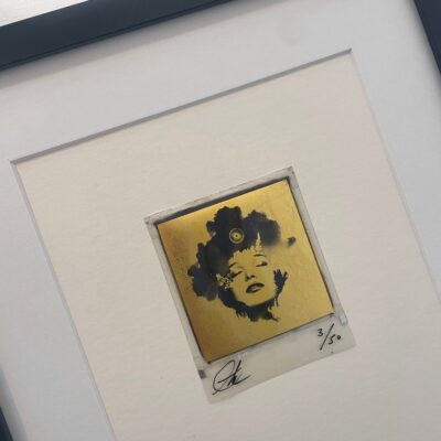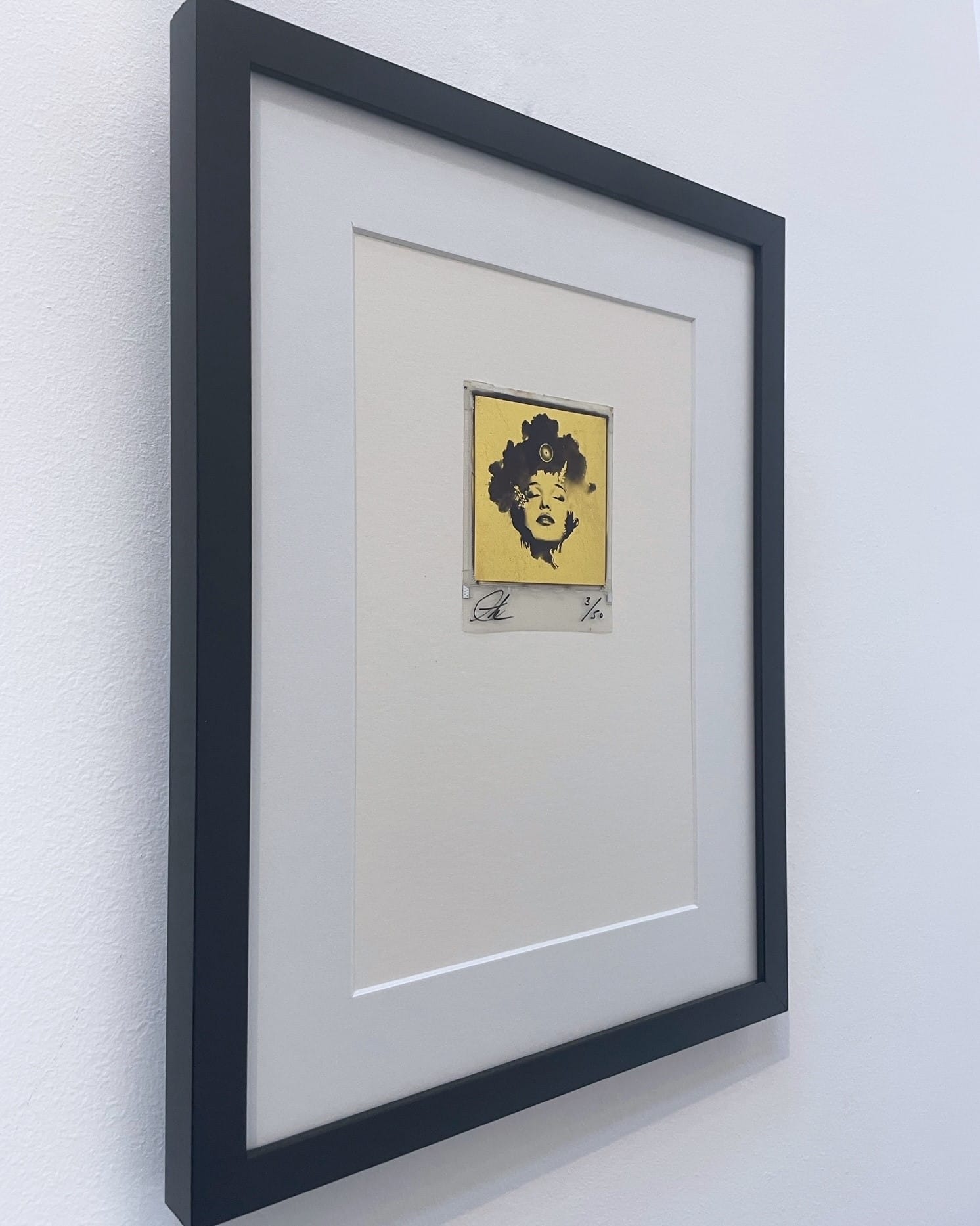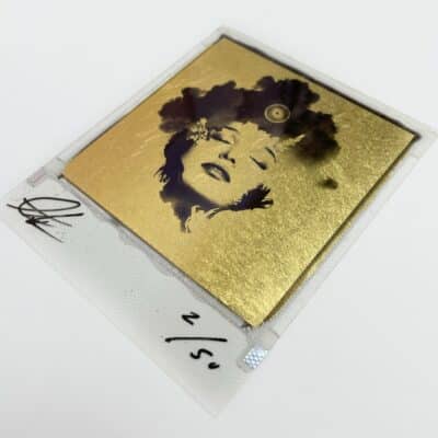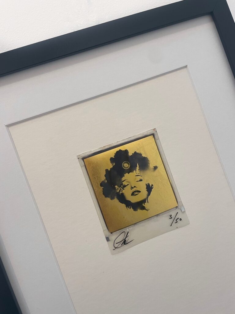 Originele met 24ct bladgoud bewerkte polaroid van Andrew Millar.