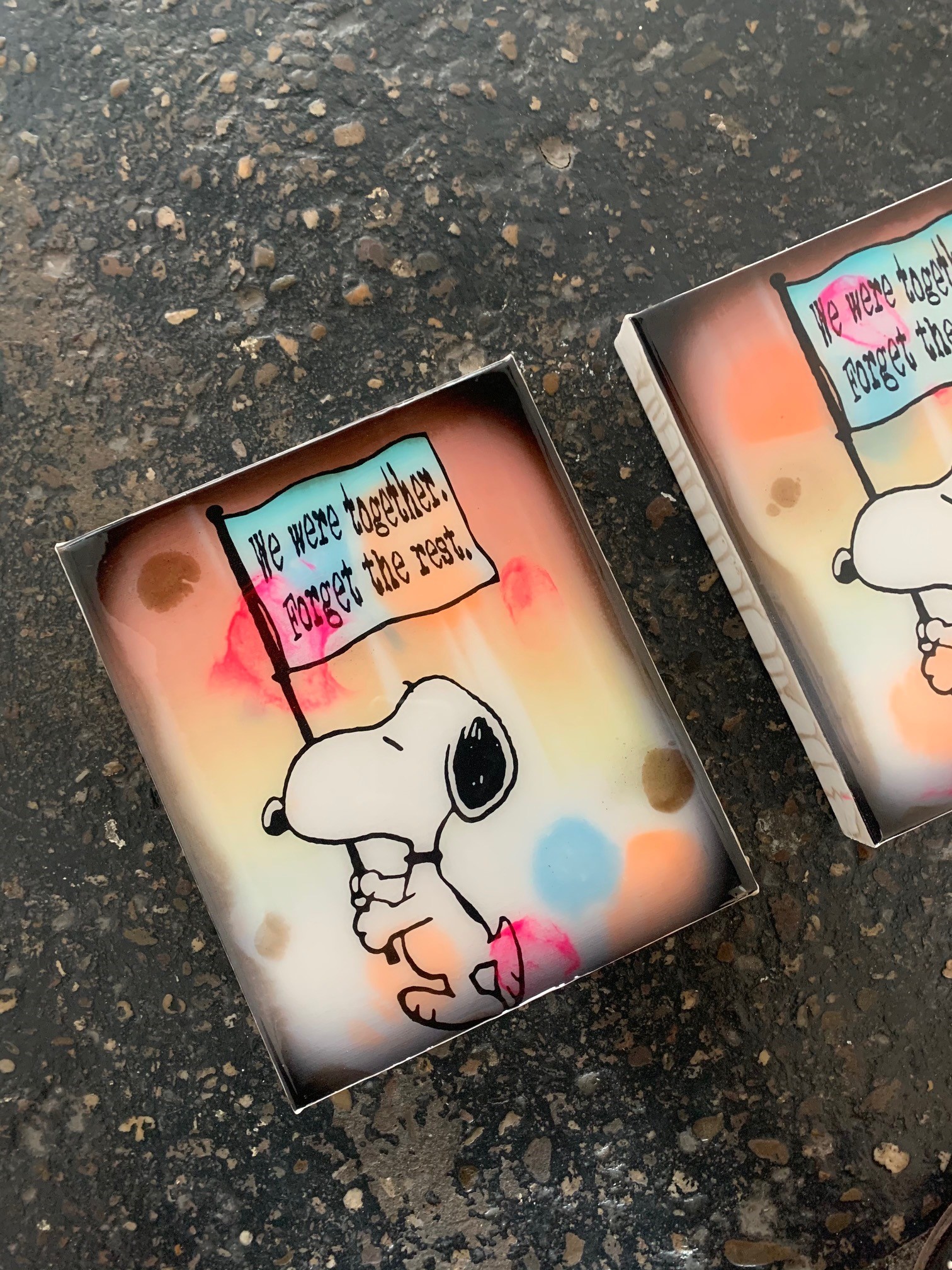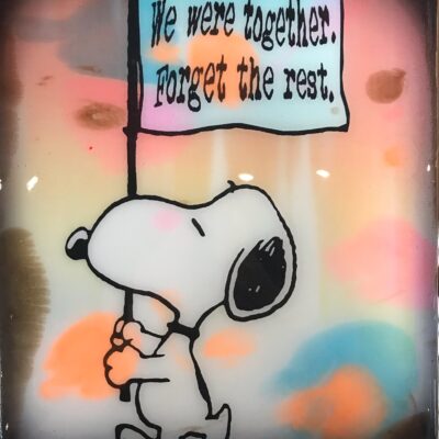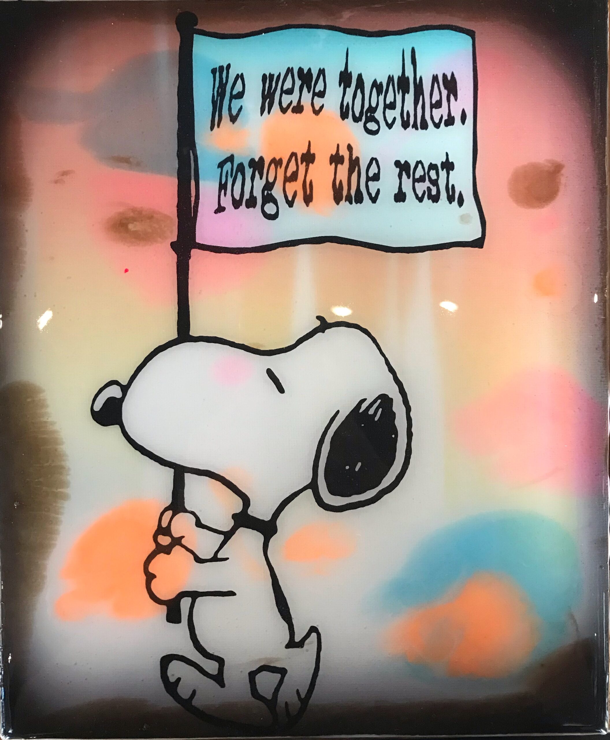 1 van een fraaie serie kleine werkjes door Jorg Doring aangeduid als ‘Crazy little things’. De stukken uit deze serie zijn door de bekende Duitse popart kunstenaar met gemengde technieken vervaardigd op kleine linnen ‘box panelen’ waardoor de stukken als een soort objecten aan de muur komen.