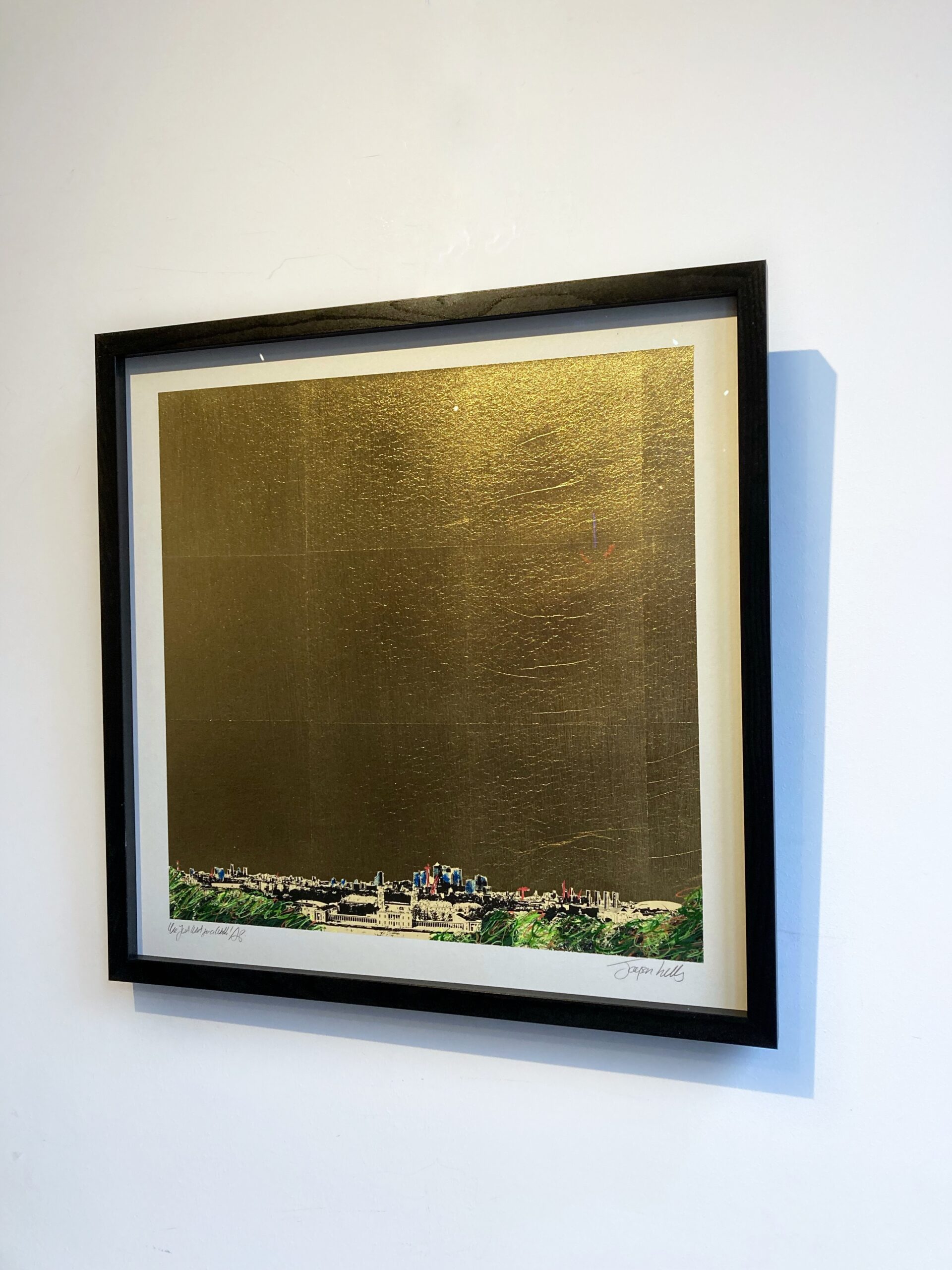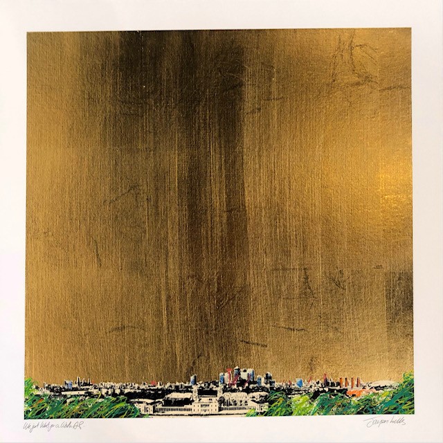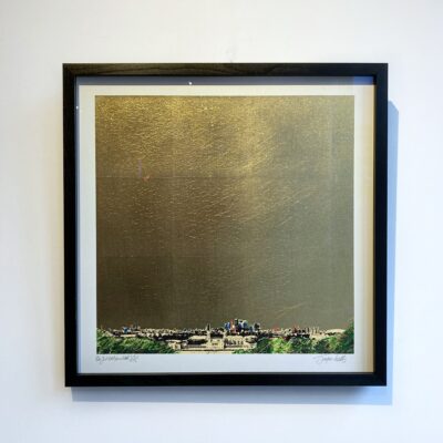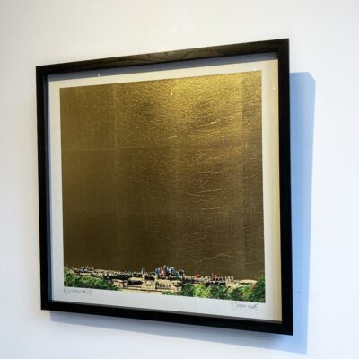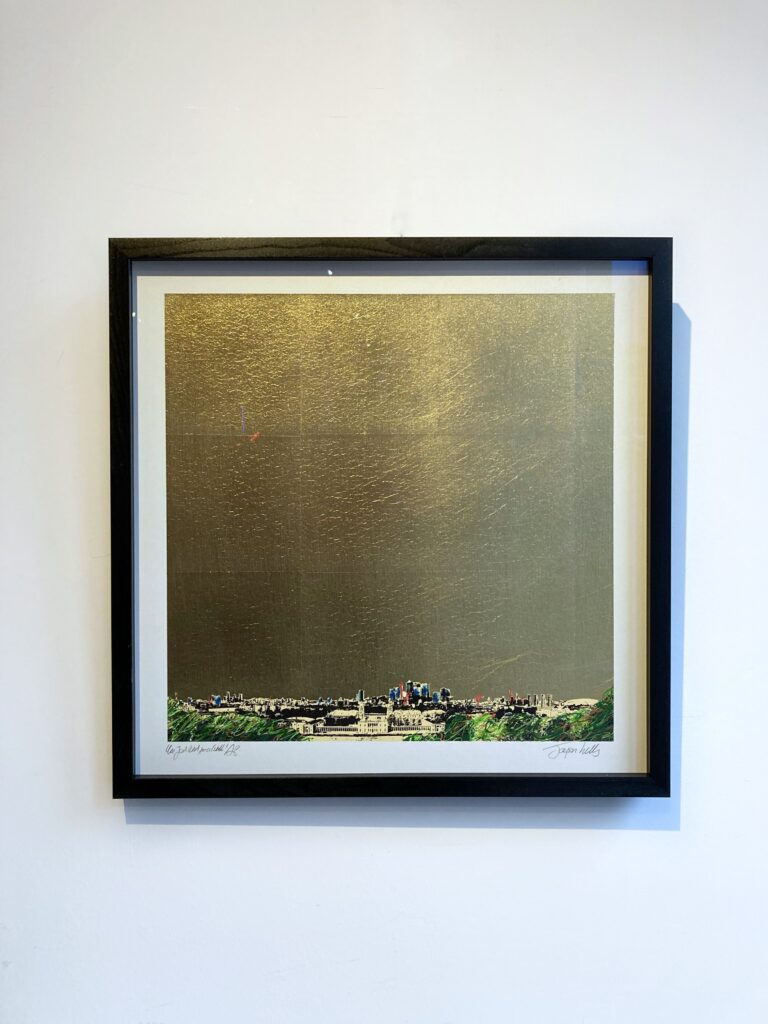 Het werk van de hedendaagse kunstenaar Jayson Lilley (1972) staat bekend om zijn stadse en architectonische focus, waarbij hij de nadruk legt op bekende stadsgezichten van onder andere Londen. In deze zeefdruk biedt Lilley een spectaculair uitzicht op Greenwich Park en het Maritiem Museum. Zijn unieke zeefdruktechniek wordt hier gecombineerd met bladgoud en met de hand aangebracht pen en inkt accenten.