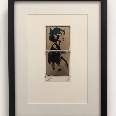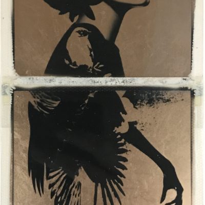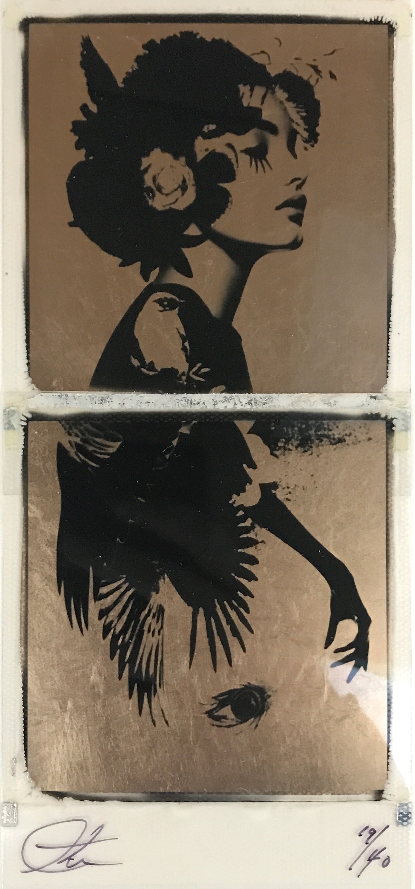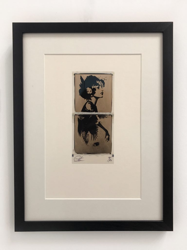 Originele met 24ct bladgoud bewerkte polaroid van Andrew Millar.