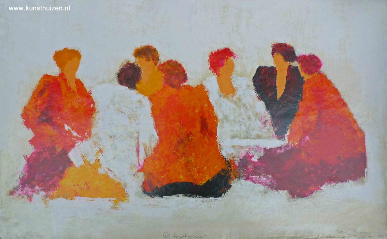 1 van een serie van 4 verschillende zeefdrukken van Wil Willemsen van eind 2010. De serie werd door Wil Willemsen vervaardigd in een beperkte oplage van slechts 45 stuks op fraai dik geschept papier. De zeefdrukken zijn bijzonder mooi zwevend opgelegd ingelijst in handgemaakte zilverkleurige lijsten voorzien van exclusief museumglas.
