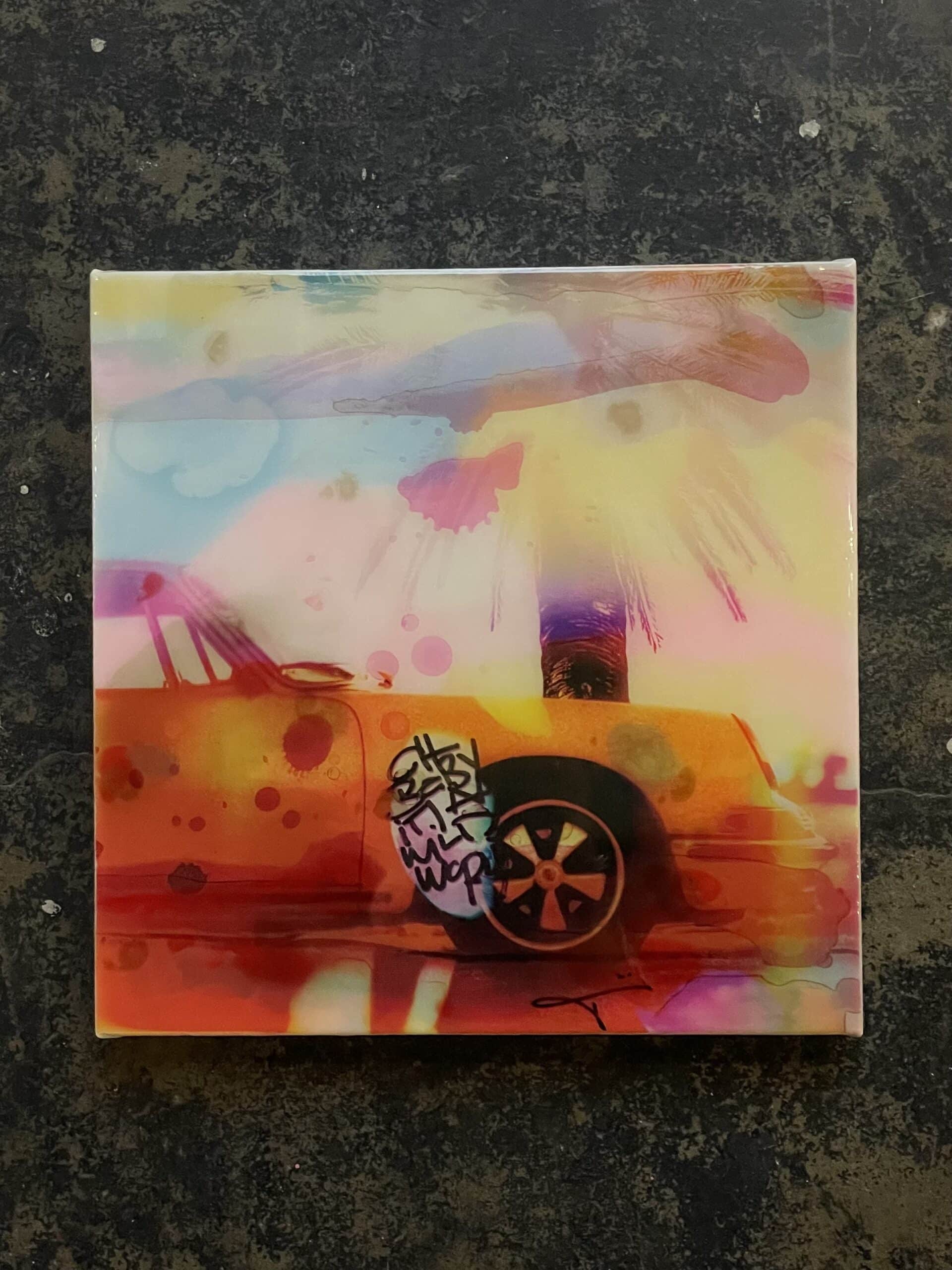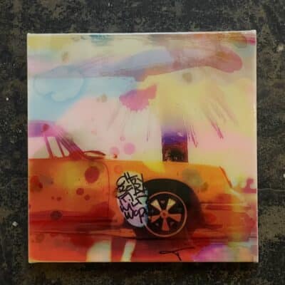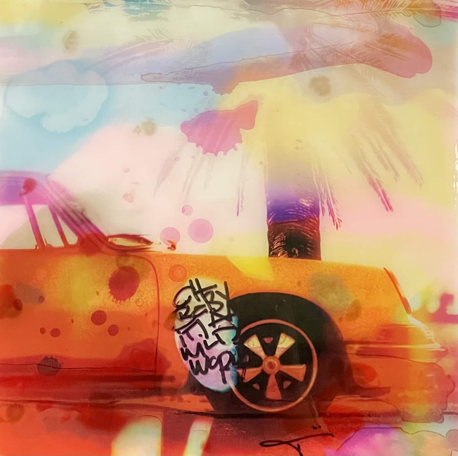 Mixed media monotype op linnen van de Duitse kunstenaar Jörg Döring. Het werk is door de kunstenaar opgebouwd uit fraaie heldere kleuren gecombineerd met foto’s, typografie en geschreven teksten. Het werk is afgewerkt met een epoxy laag. De monotypes zijn in een volledig met de hand vervaardigde oplage vervaardigd waardoor elk stuk volledig uniek is. Opgespannen op een stevig dubbeldik frame.