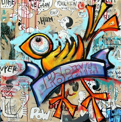 Origineel werk van Willemien Brand, vervaardigd in het najaar van 2011. “Love is a battlefield” is 1 van een serie werken waarin de kunstenares een mix van gemengde technieken, collages, paintbrush, epoxy, laat samensmelten tot een spannend en dynamisch eindresultaat met de kenmerkende vrolijke en ontwapende knipoog waar Willemien Brand zo bekend om staat.